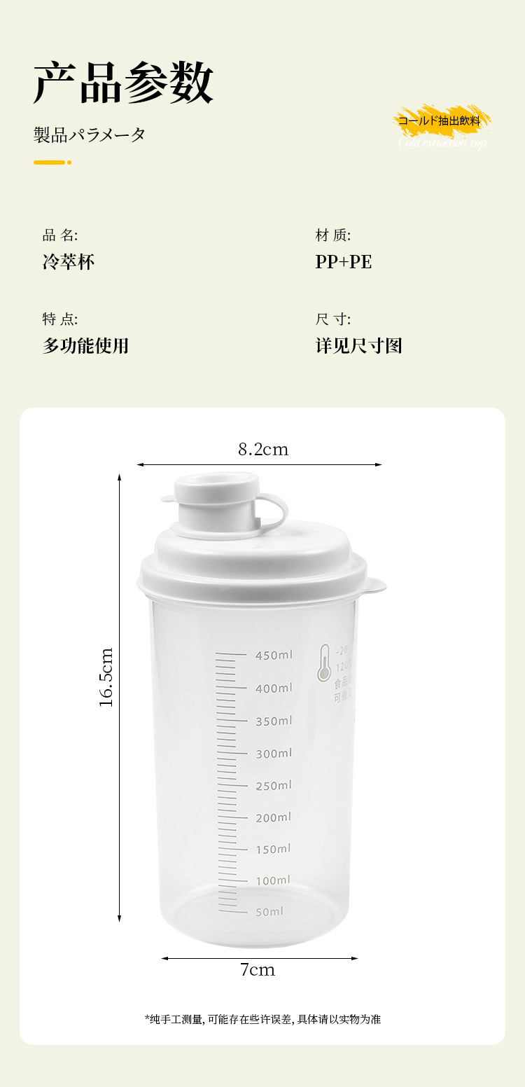 Летняя кружка для холодного заваривания 450 мл, портативная кружка для кофе и соков, креативная герметичная кружка для напитков из пищевого материала