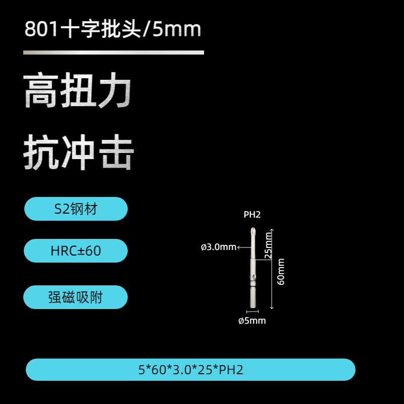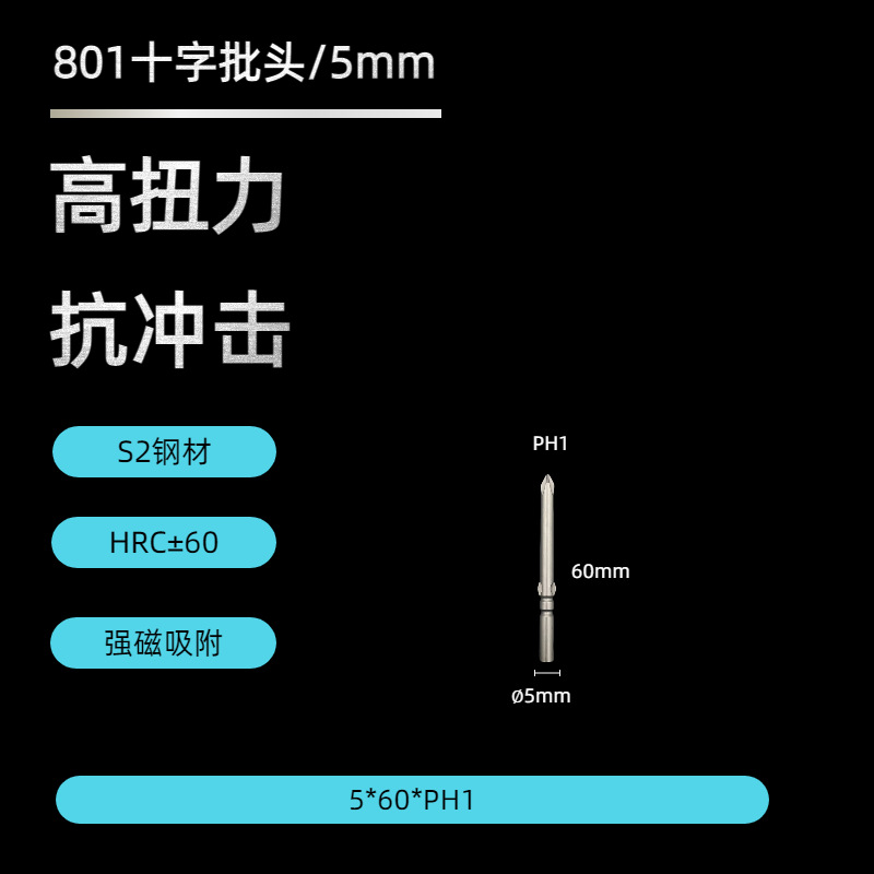 Оптовая продажа с завода: сверло-бит крестообразное 801, сверхпрочное, 5*60 мм, с защитой от скольжения, для электродрели, с сильным магнитом