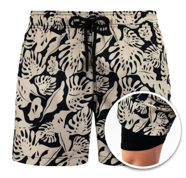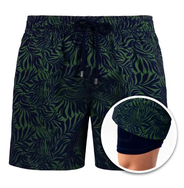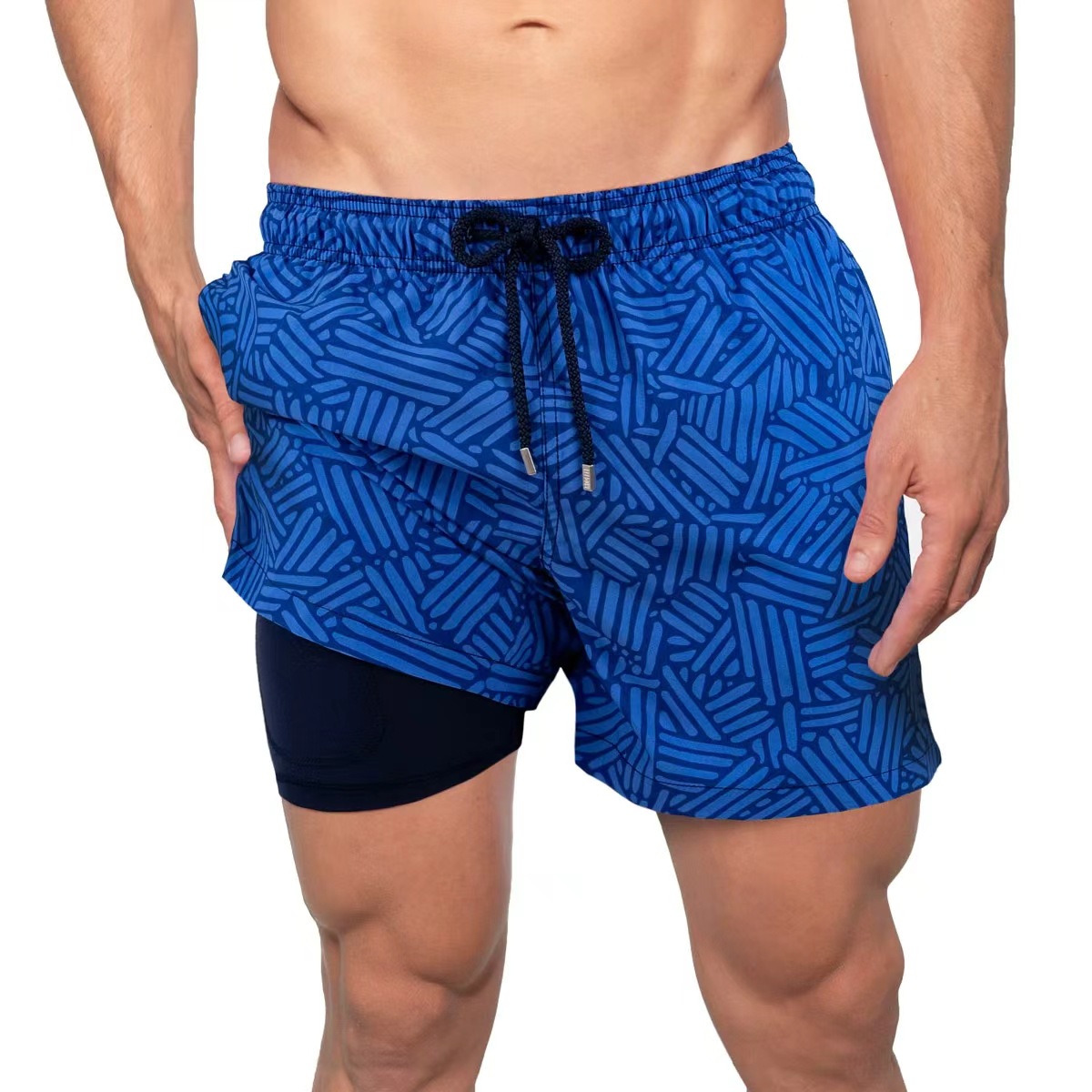 Трансграничное летнее европейское и американское мужское пляжные брюки спортивные принты двухслойные шорты с обновлением продукта карманный дренаж