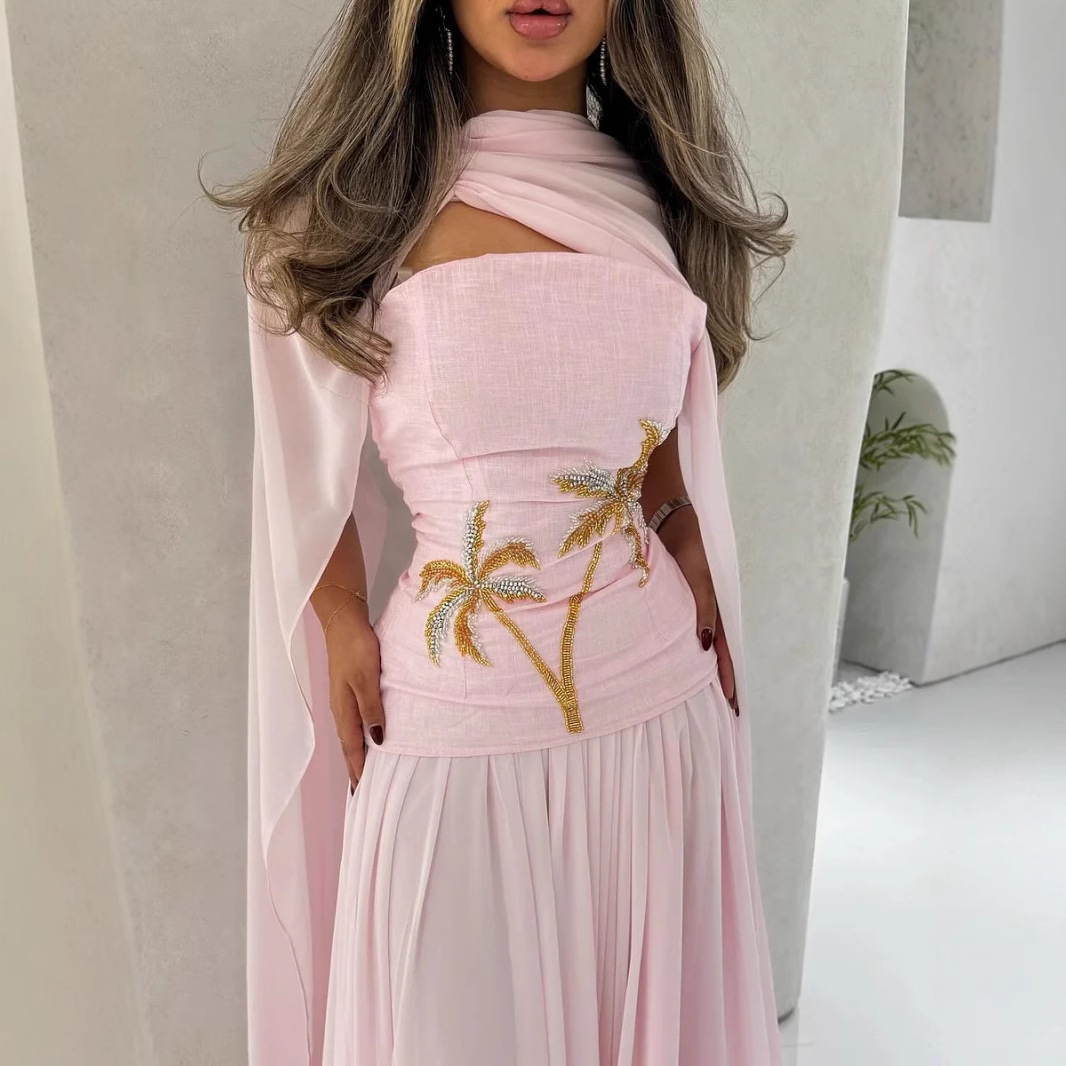 Весеннее платье 2025 года, европейско-американский и ближневосточный стиль, женское, независимый бренд Amazon, сексуальное шифоновое платье-шаль с бисером для вечерних выходов