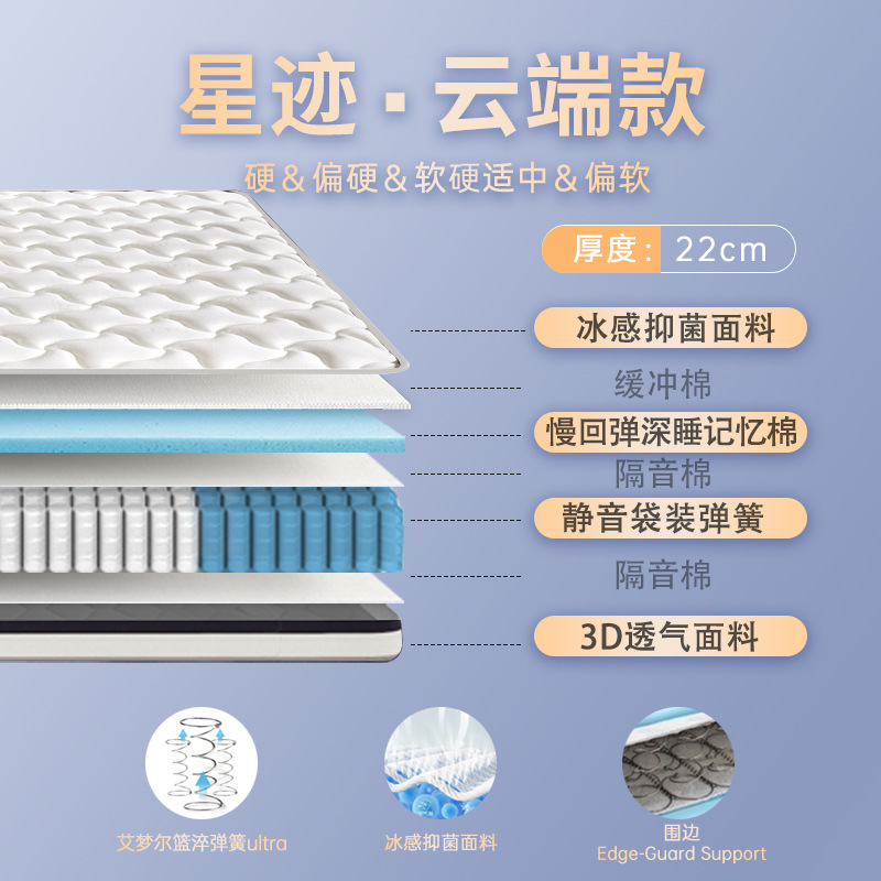 Серия Star Trail: сбалансированная модель; Серия Star Trail: Модель глубокого сна; Серия Star Trail: Модель мечты; Серия Star Trail: модель защиты позвоночника; Серия Star Trail: стиль шелкового сна; Серия Star Trail: модель облака; Серия Star Trail: элитная модель класса люкс (ролл-пакет); Серия Star Trail: Royal Edition (ролл-пакет)