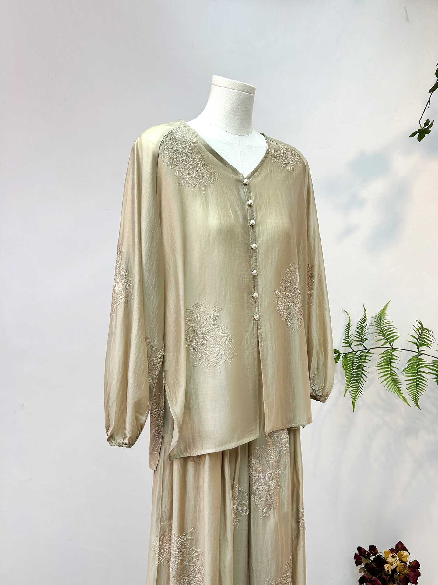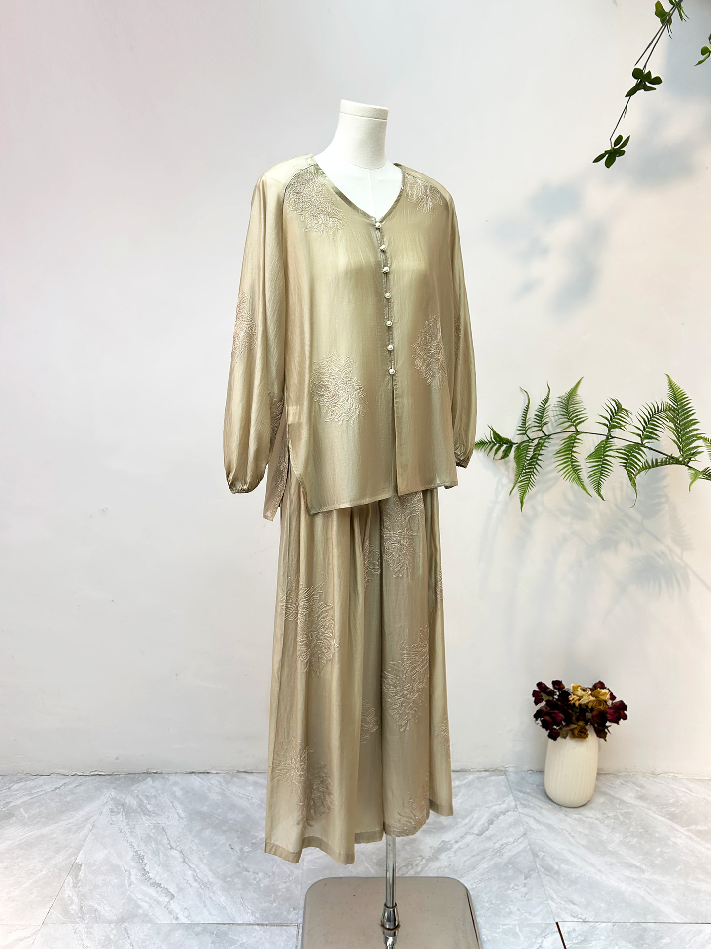Новый китайский модный национальный стиль: комплект брюк и топа в стиле Тан для женщин, лето 2025, новый повседневный дышащий свободный тонкий двухсоставной комплект