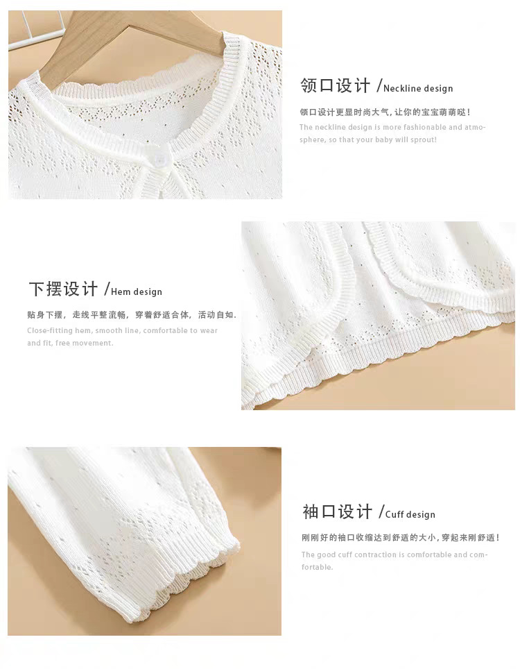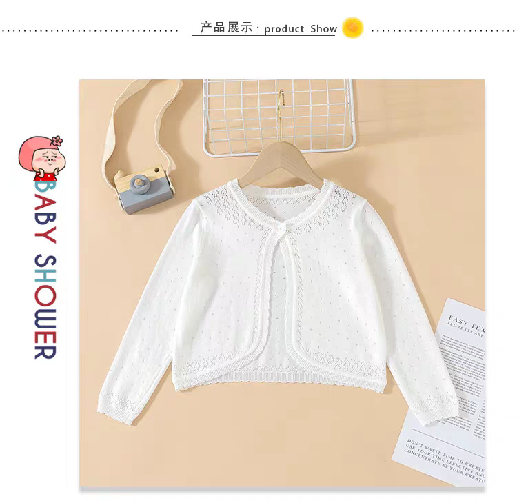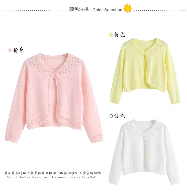 25 весенних и летних девочек рубашки с кондиционером с тонким полым трикотажным кардиганом
