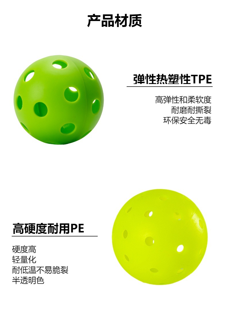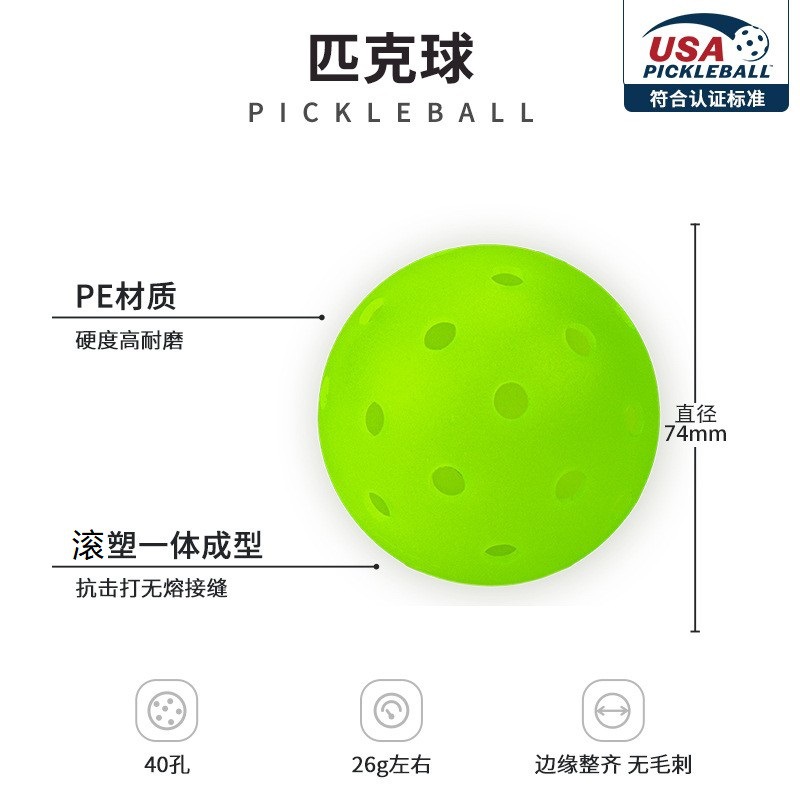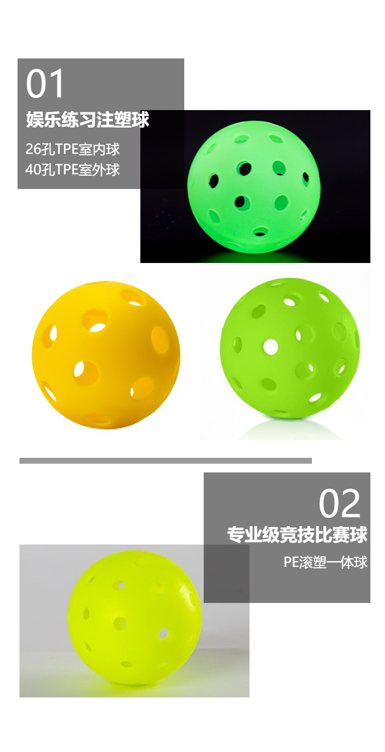 Желтый шарик, отлитый под давлением, с 26 отверстиями.; Оранжевый шарик, отлитый под давлением, с 26 отверстиями.; Зеленый шарик, отлитый под давлением, с 26 отверстиями.; Розовый шарик, отлитый под давлением, с 26 отверстиями.; Синий шар с 26 отверстиями, изготовленный методом литья под давлением; Желтый шарик, отлитый под давлением, с 40 отверстиями.; Оранжевый шарик, отлитый под давлением, с 40 отверстиями.; Зеленый шарик, отлитый под давлением, с 40 отверстиями.; Светящийся шарик, отлитый под давлением, с 40 отверстиями.; Желтый шар из полиэтилена с 40 отверстиями, изготовленный методом ротационного формования.; Желто-зеленый шарик из полиэтилена с 40 отверстиями для ротационного формования; Модернизированный вращающийся шар из полиэтилена.; Шаровая трубка пика (за исключением шарика пика); Коробка для чистых белых шариков (без пиклбола, вмещает 4 штуки); Коробка для чистых белых шариков (без пиклбола, вмещает 6 штук)