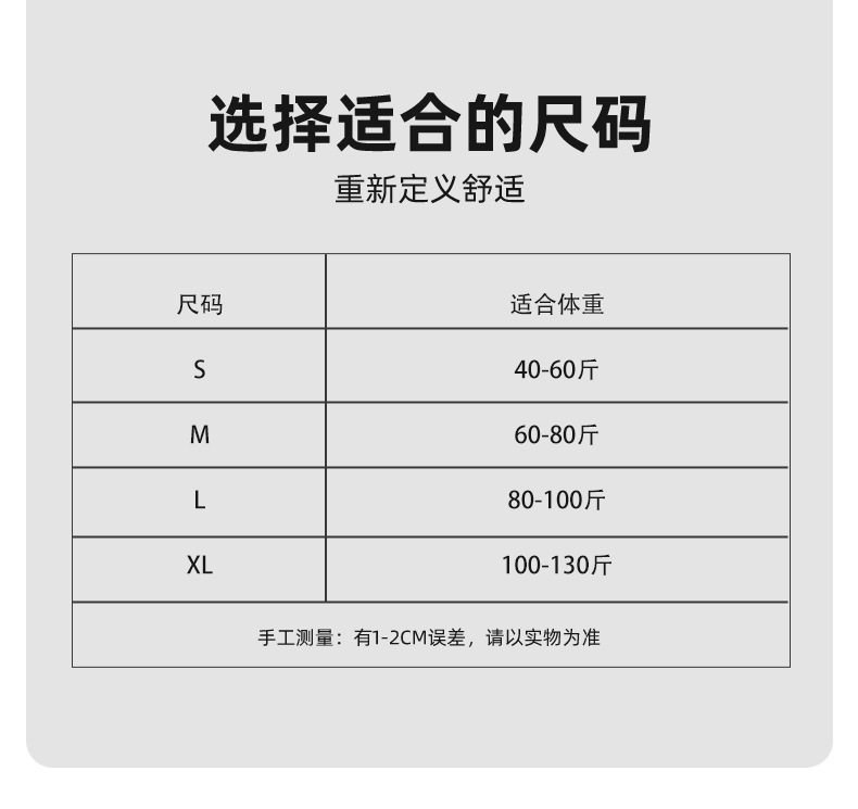 S (рекомендуется 20-30kg ); М (рекомендуется 30-40kg ); L (рекомендуется 40-57.5kg ); XL (рекомендуется 115-135)