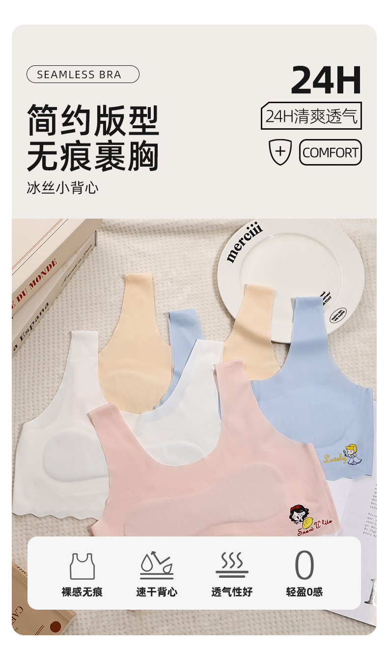 Развивающие бюстгальтеры для девочек на осень и зиму, для возраста 9-12 лет, бесшовные, из ледяного шелка, удобные, для школьниц, детское нижнее белье для девочек.