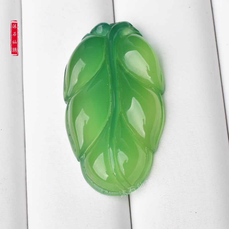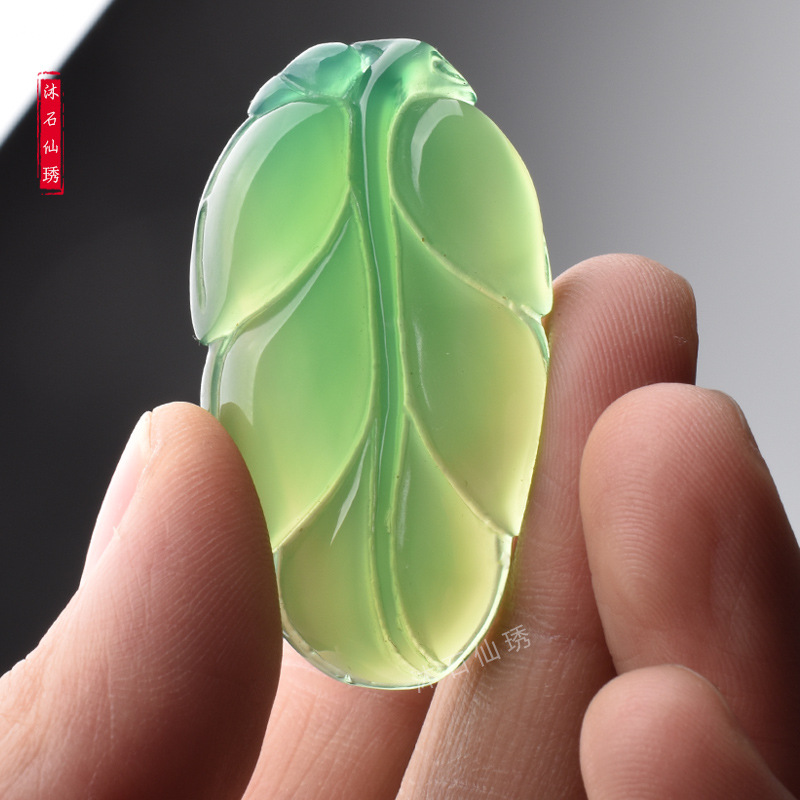 Подвеска в виде листа халцедона высокого ледяного зеленого цвета, золотая ветка, подвеска в виде листа нефрита, женская цепочка для свитера