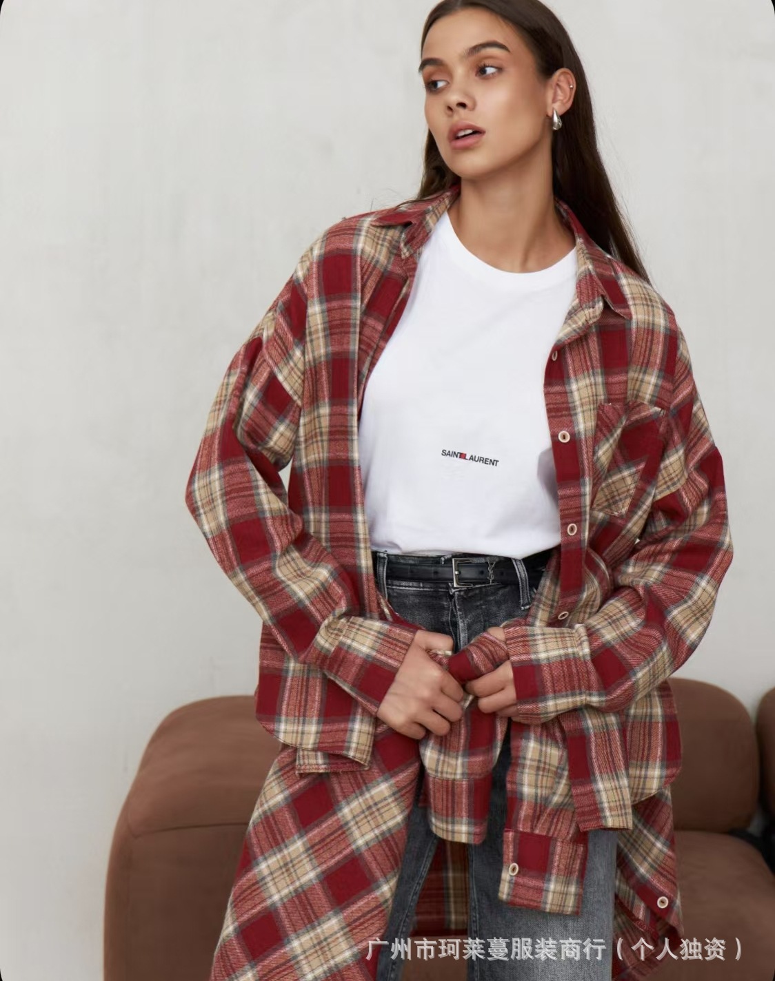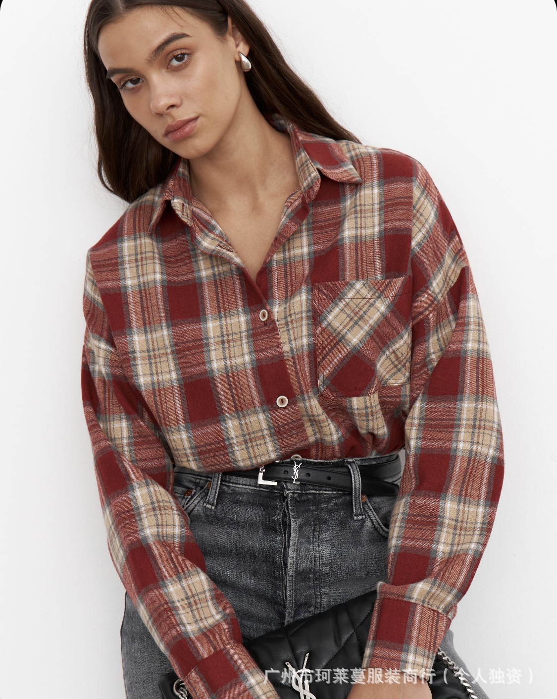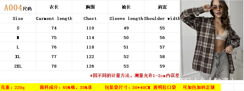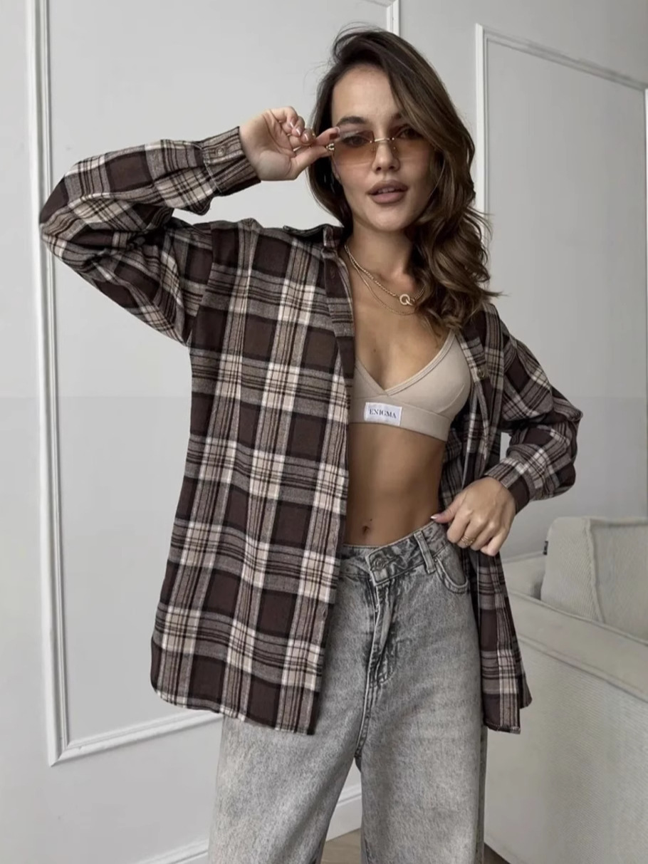 Amazon OZON трансграничная рубашка, женская универсальная рубашка в стиле ретро, весна-осень 2022, клетчатая полосатая рубашка с длинными рукавами и карманами с клапаном, брюки, рубашка