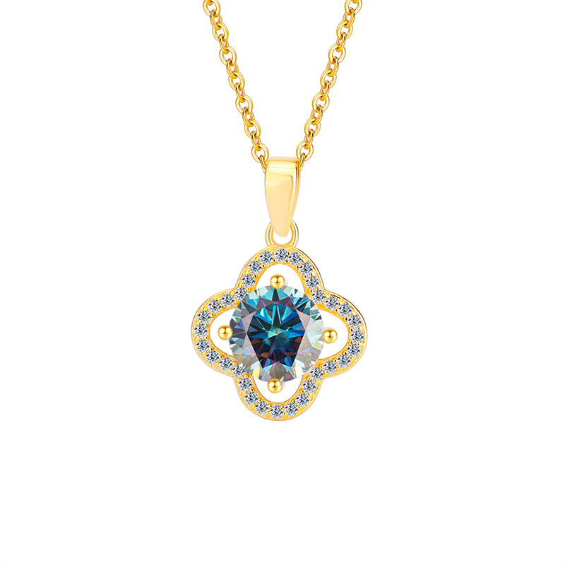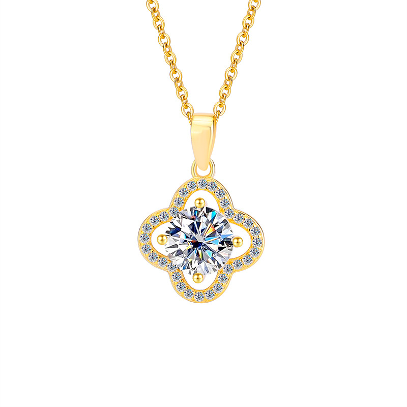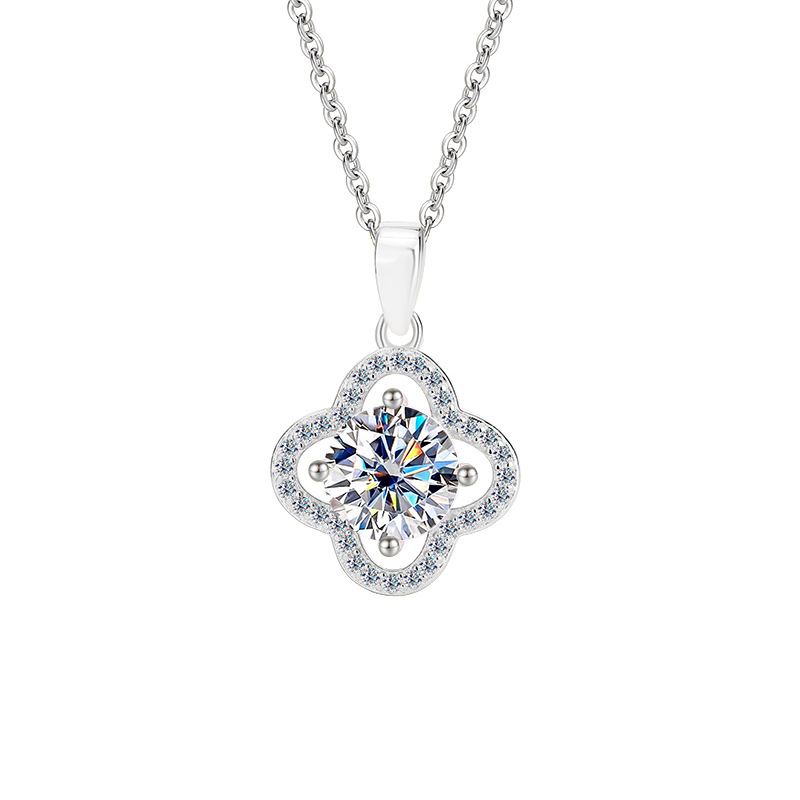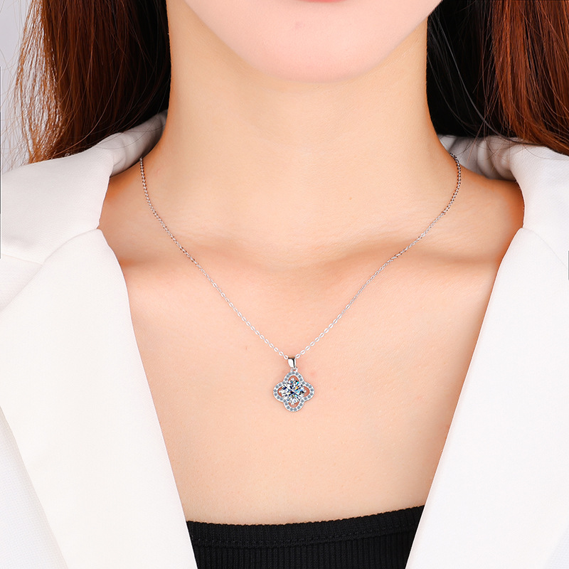 S925 стерлингового серебра Мосан бриллиант четырехлистное ожерелье цветок подвеска мода высокого класса моассанит ключицы цепи фабрики оптом