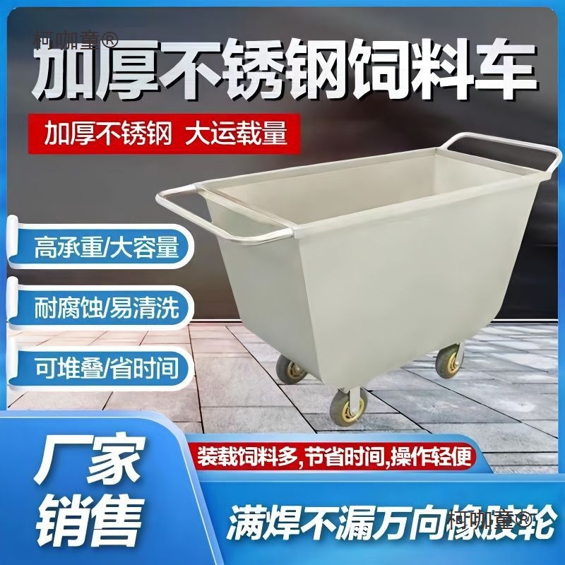 Кормовая тележка из нержавеющей стали для ферм, усиленная ручная тележка для свинофермы, тележка для свиней из нержавеющей стали, ручная тележка для домашнего использования.