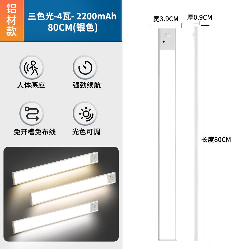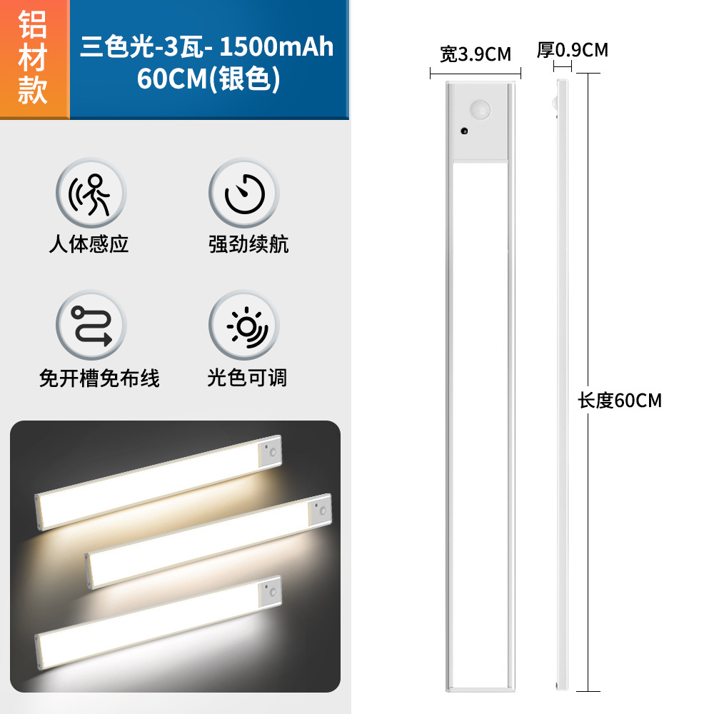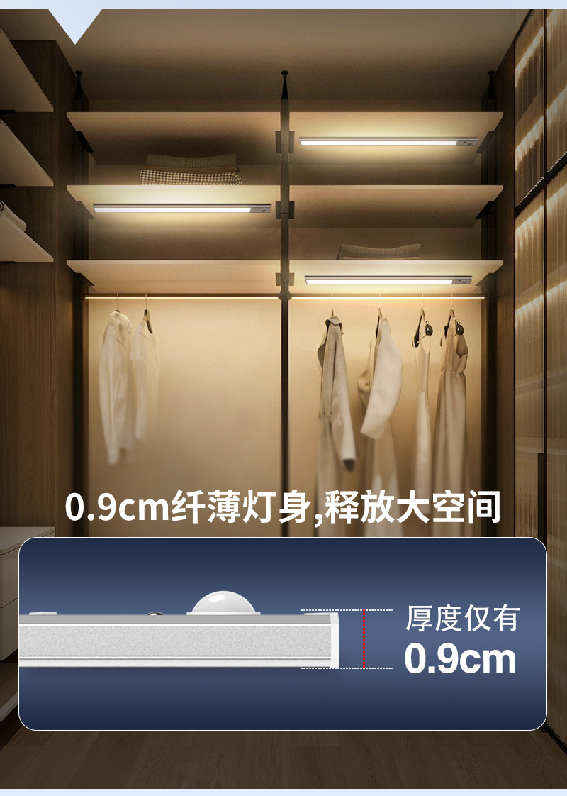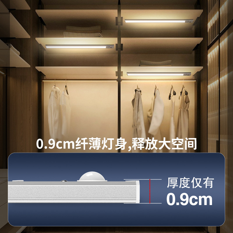 超薄智能人体感应led灯 磁吸自粘长条衣柜灯带充电式酒柜橱柜灯条
