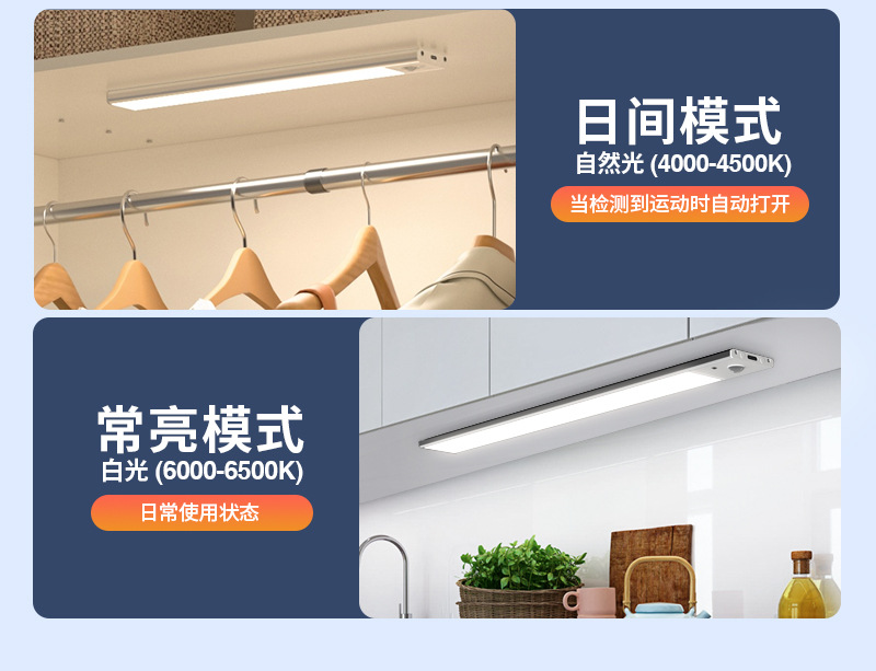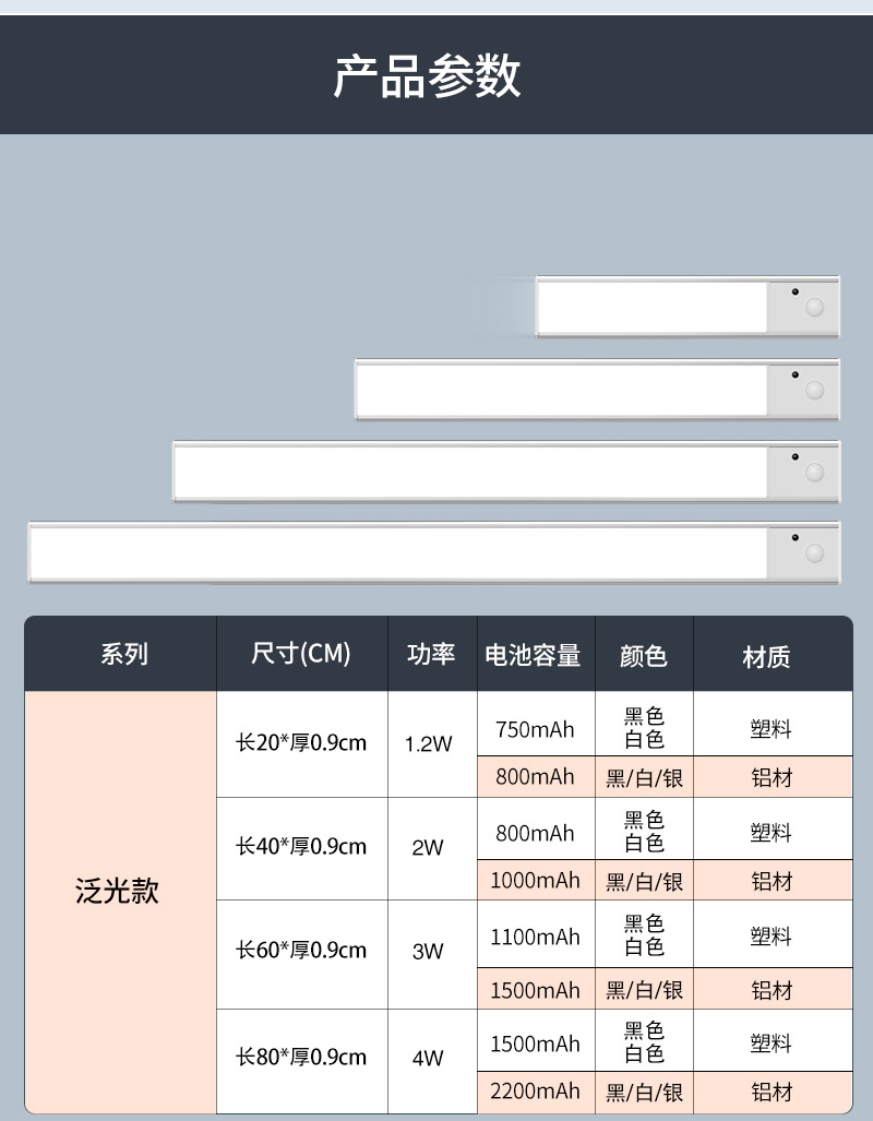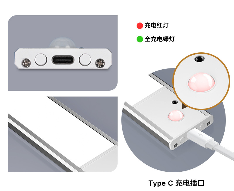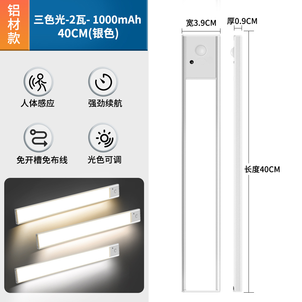 超薄智能人体感应led灯 磁吸自粘长条衣柜灯带充电式酒柜橱柜灯条