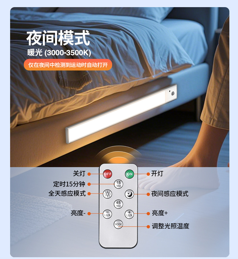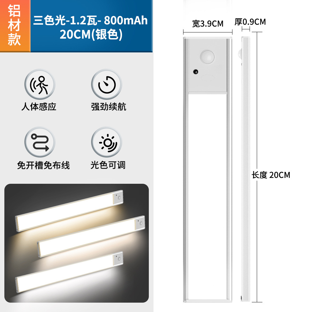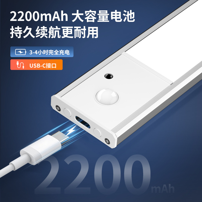 led智能人体感应无线磁吸长条小夜灯充电式厨房衣柜橱柜酒柜卧室