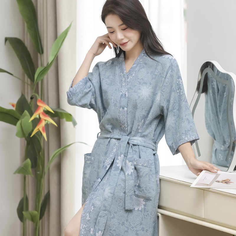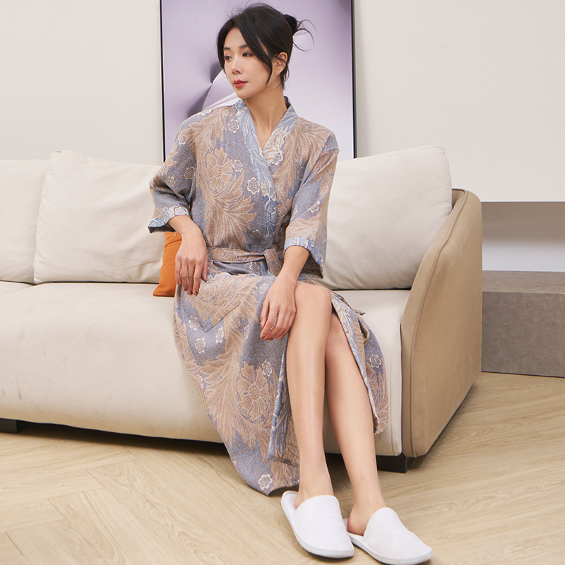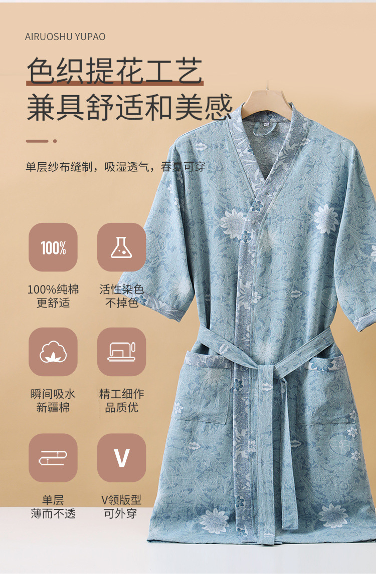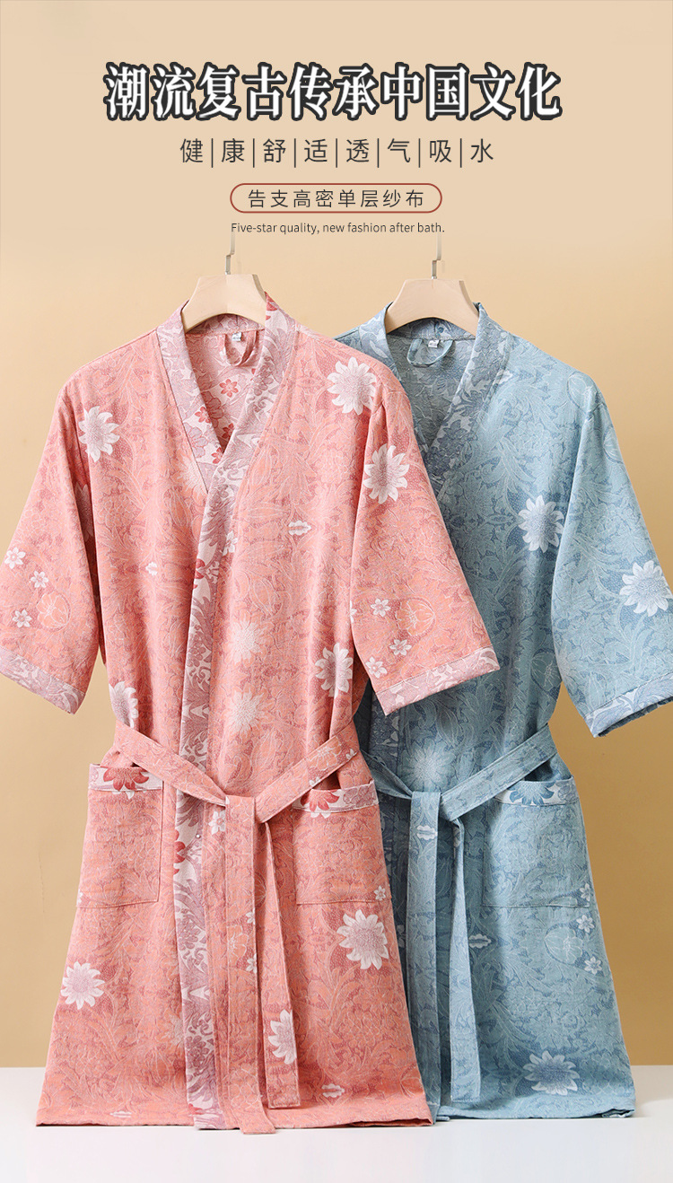 Хлопчатобумажный халат женский новый впитывающий быстрый сухой банный халат халат марля ночная рубашка национальный ветер мужской ванны тонкий