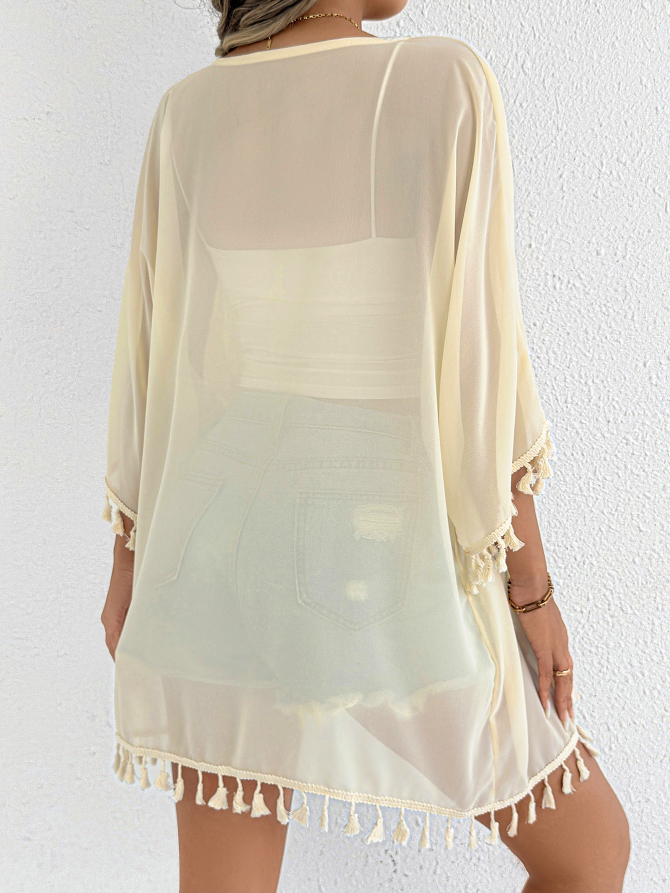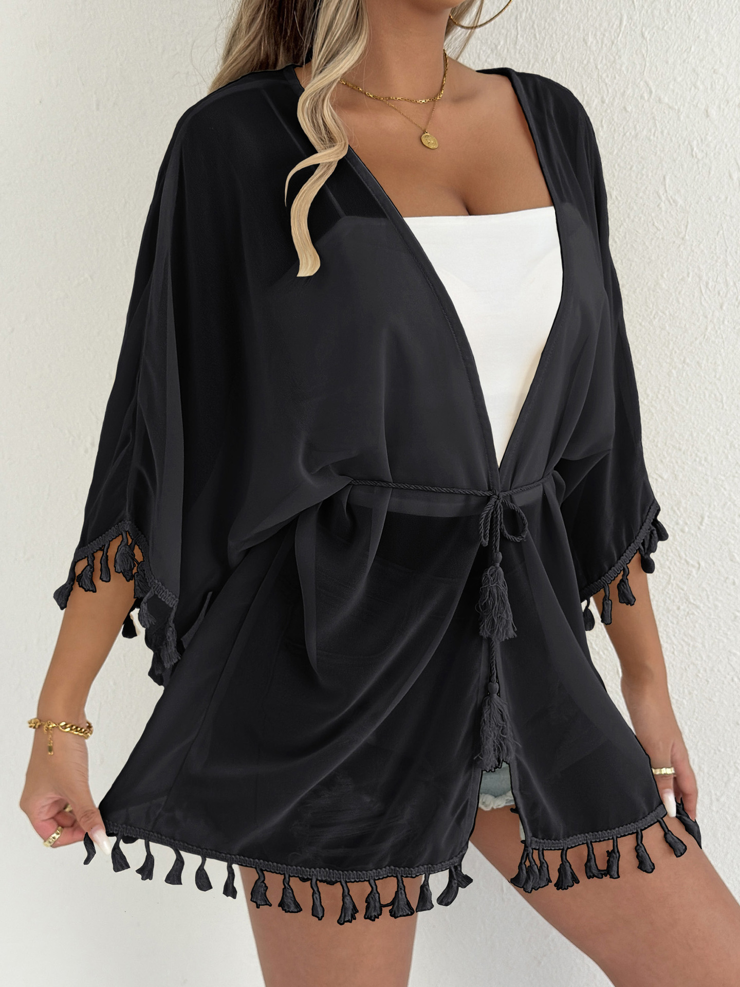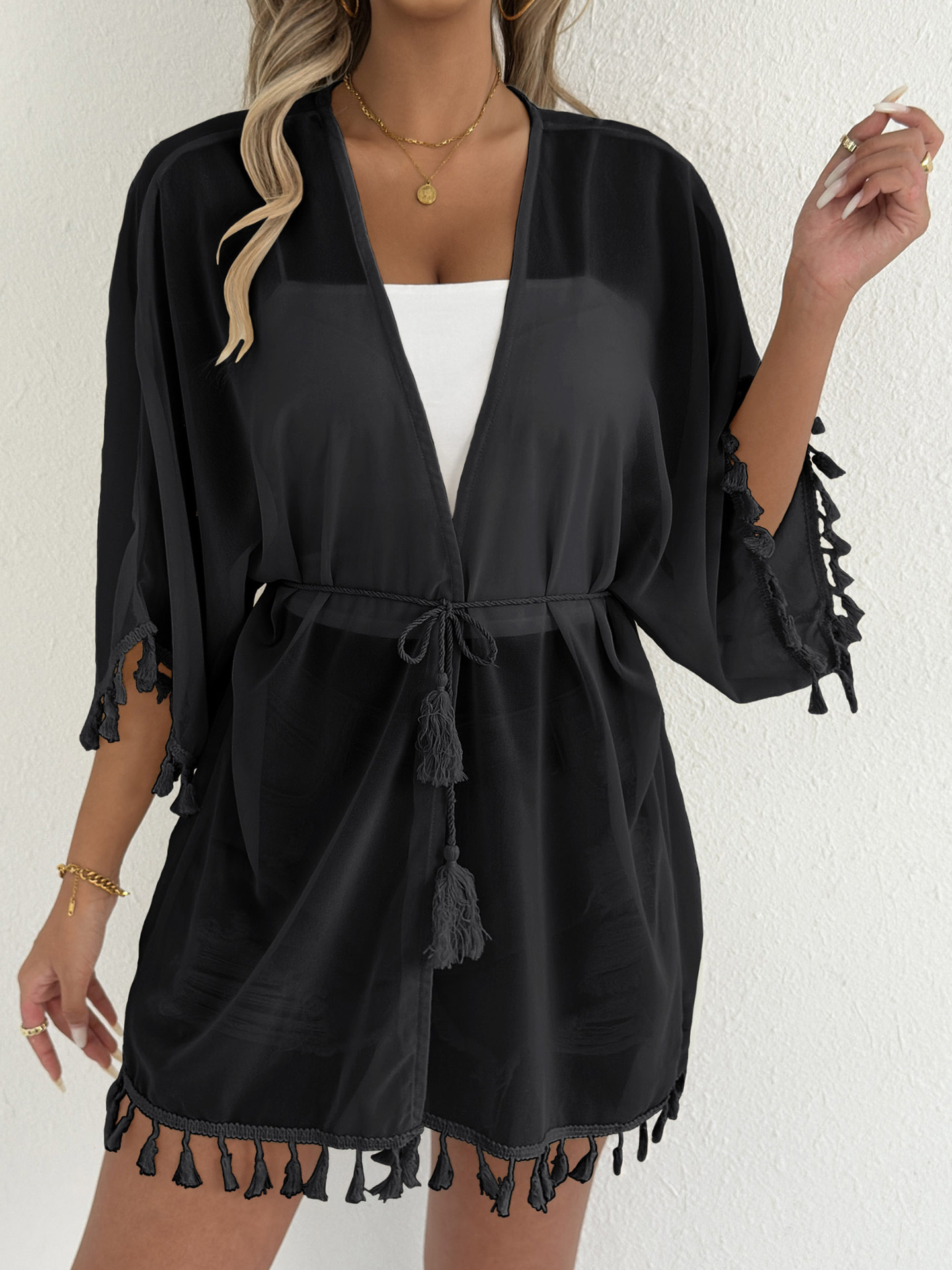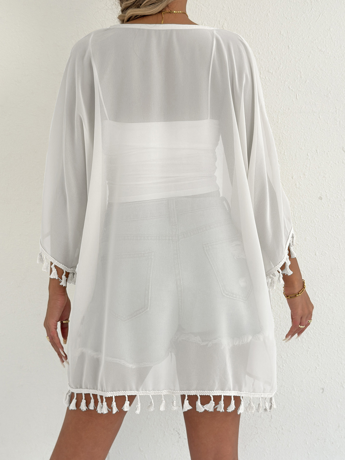 Женская шифоновая рубашка европейского и американского размера, женская однотонная повседневная пляжная рубашка с кисточками, бикини, солнцезащитная куртка, накидка