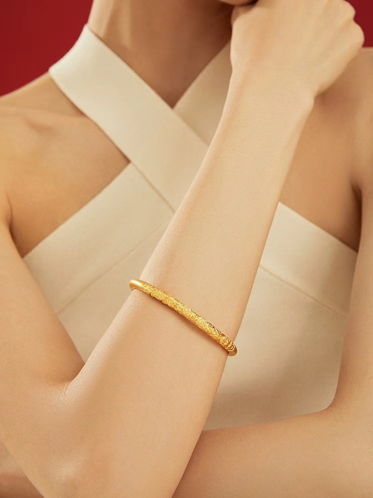Браслет из золота 18к с витым узором, Au750, цельный, неформованный, простой, элегантный, популярный, с арабесками в виде цветов вишни, оптом