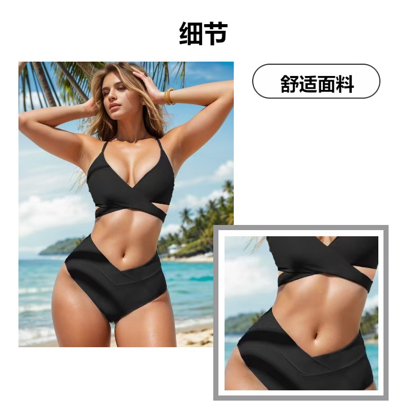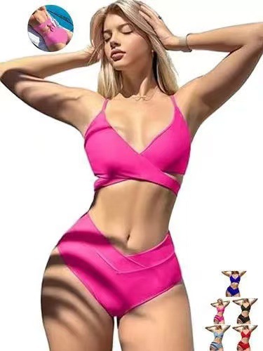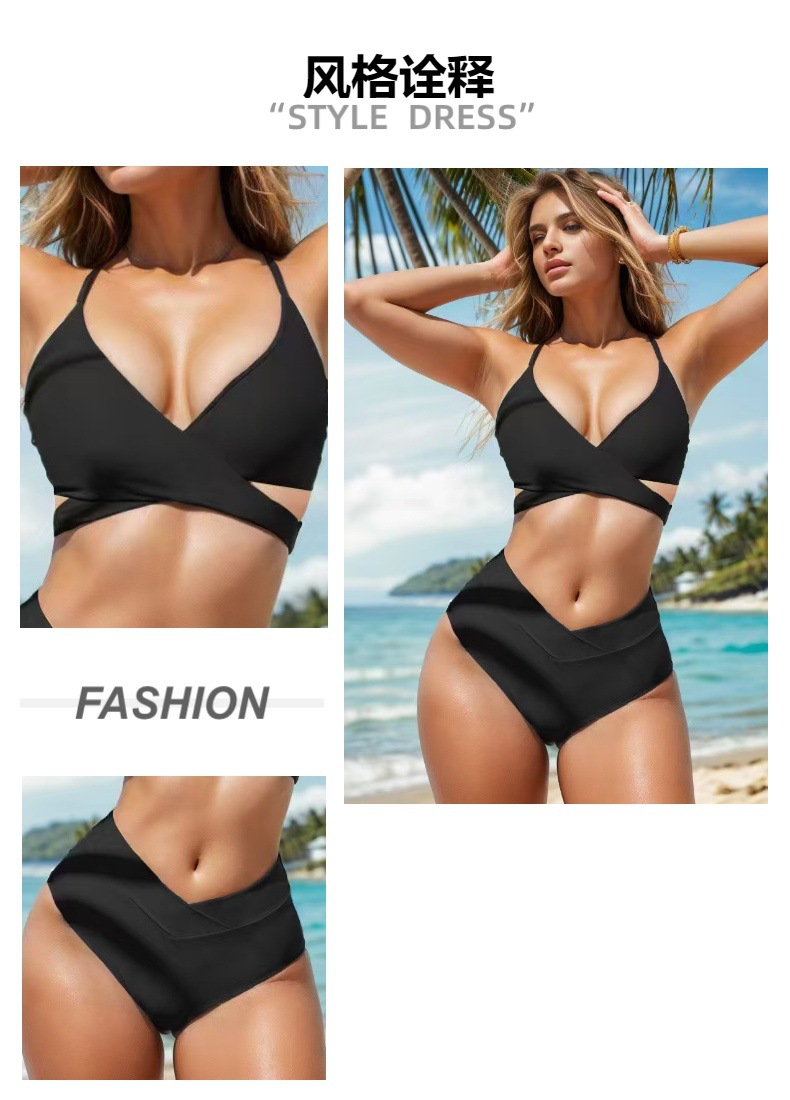 Европейский и американский экспортный сексуальный однотонный разделенный купальник, женский купальник с небольшой грудью, пуш-ап, двойной бретель, бикини с высокой талией