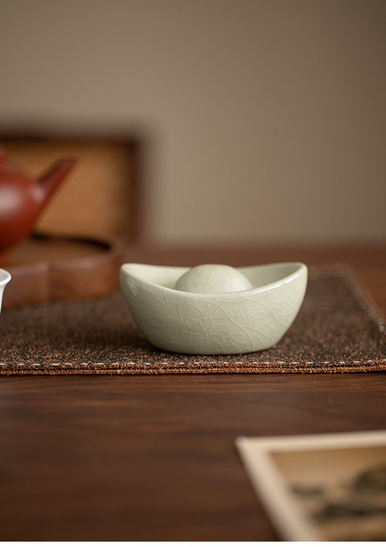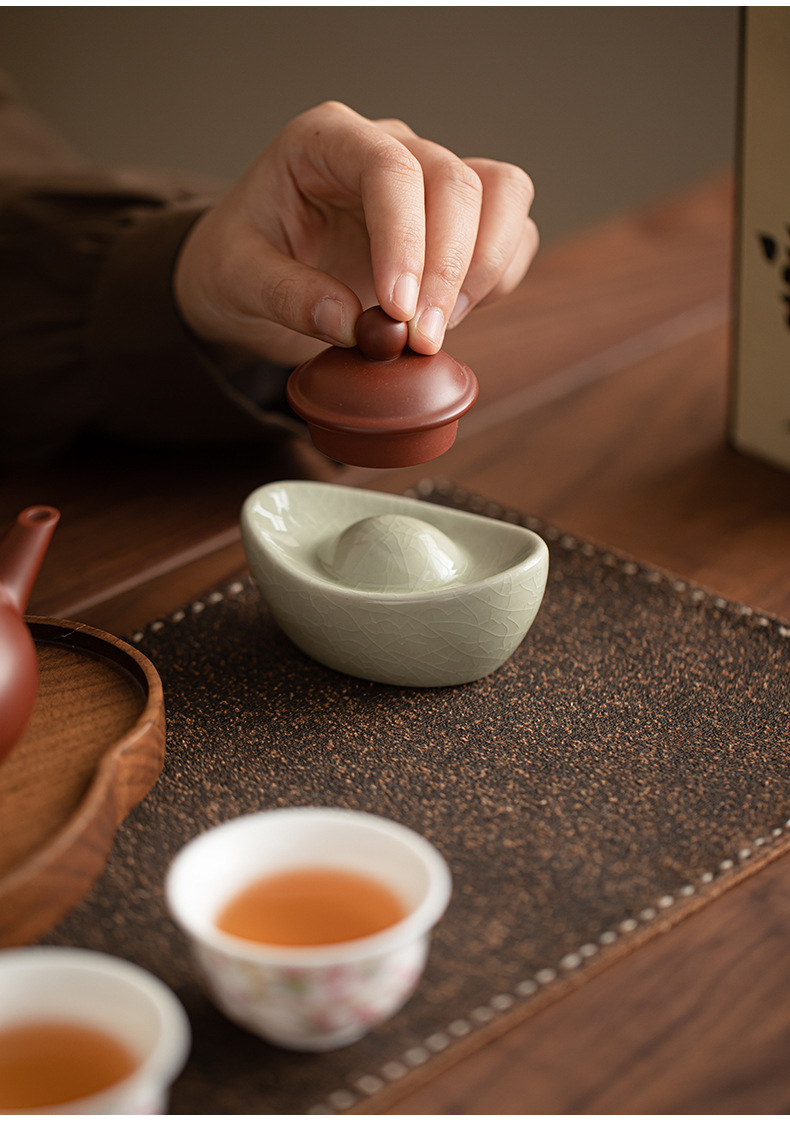 Ru Kiln Gold Ingot Tea Pet Ornament Creative Premium Фрагментированный чай Игра Чайный столик Чехол для чайной церемонии Аксессуары для чайного сервиза.