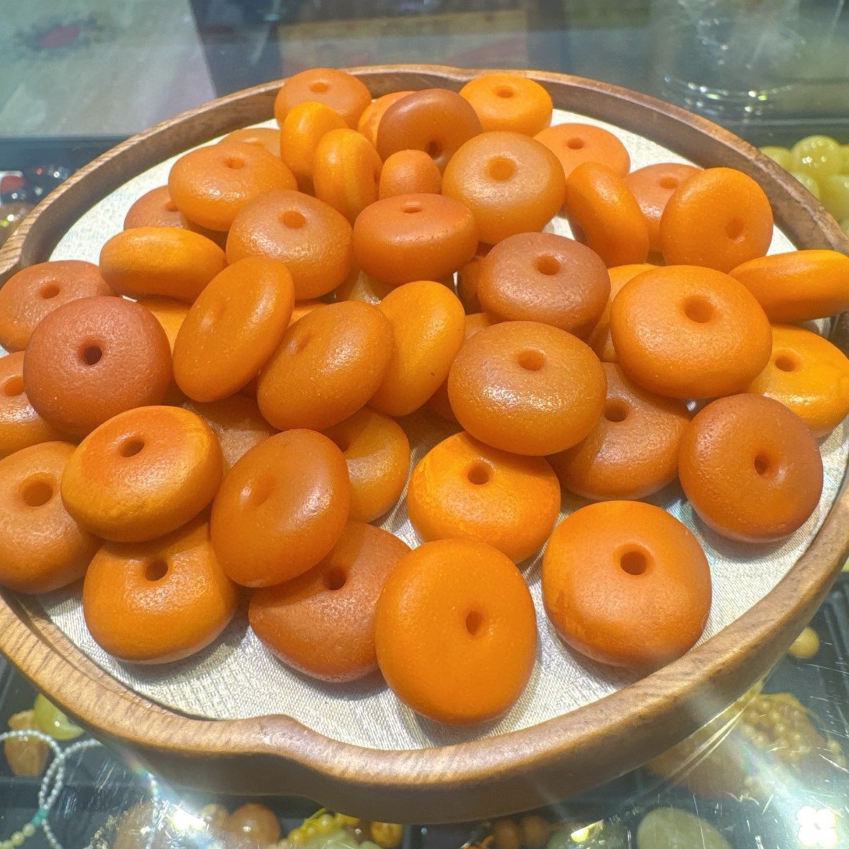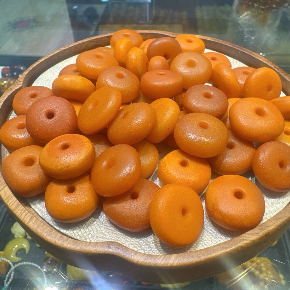 此款橘皮老蜜蜡为烤色老蜜蜡 外面橘黄 磕碰坏内部浅黄色!介意勿拍