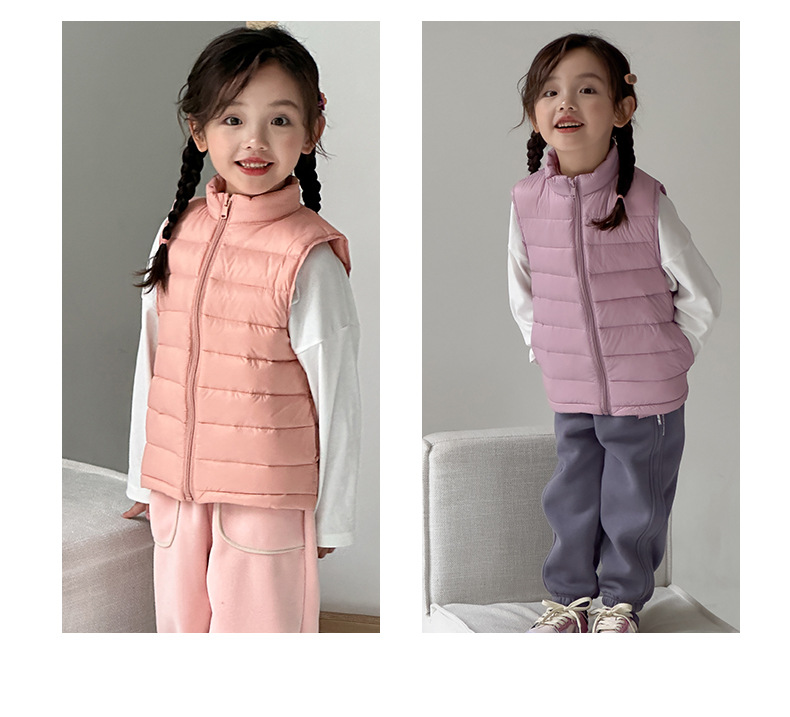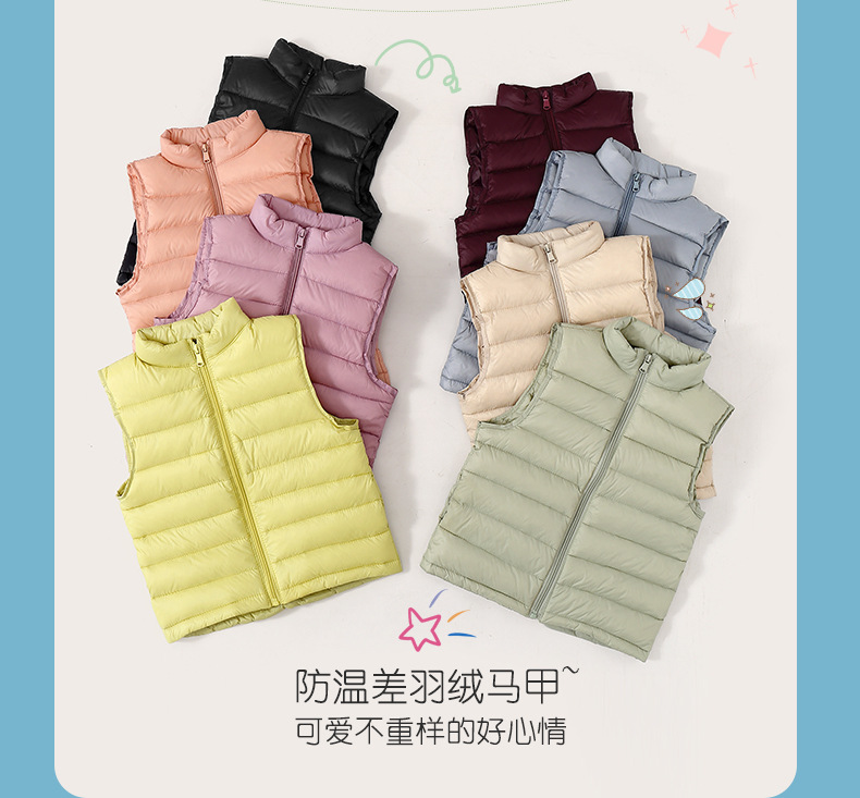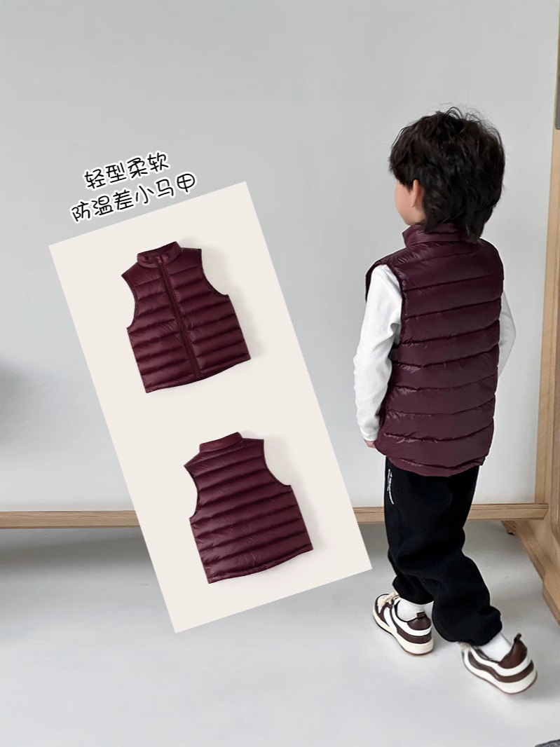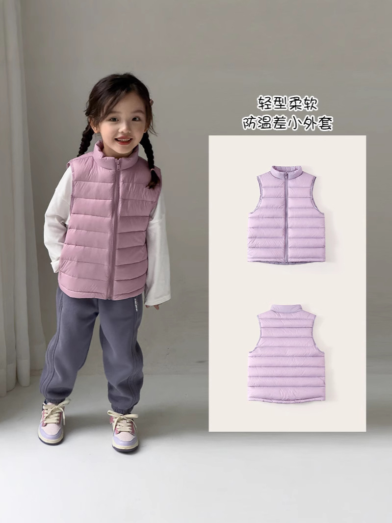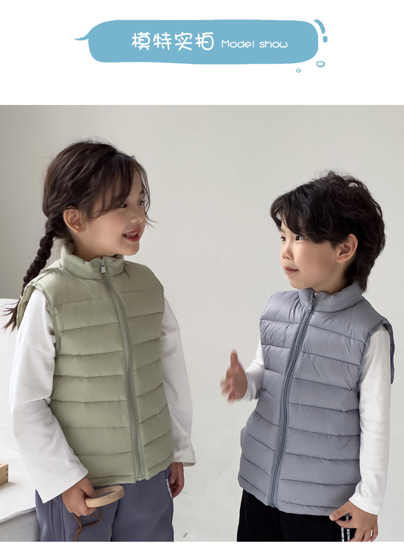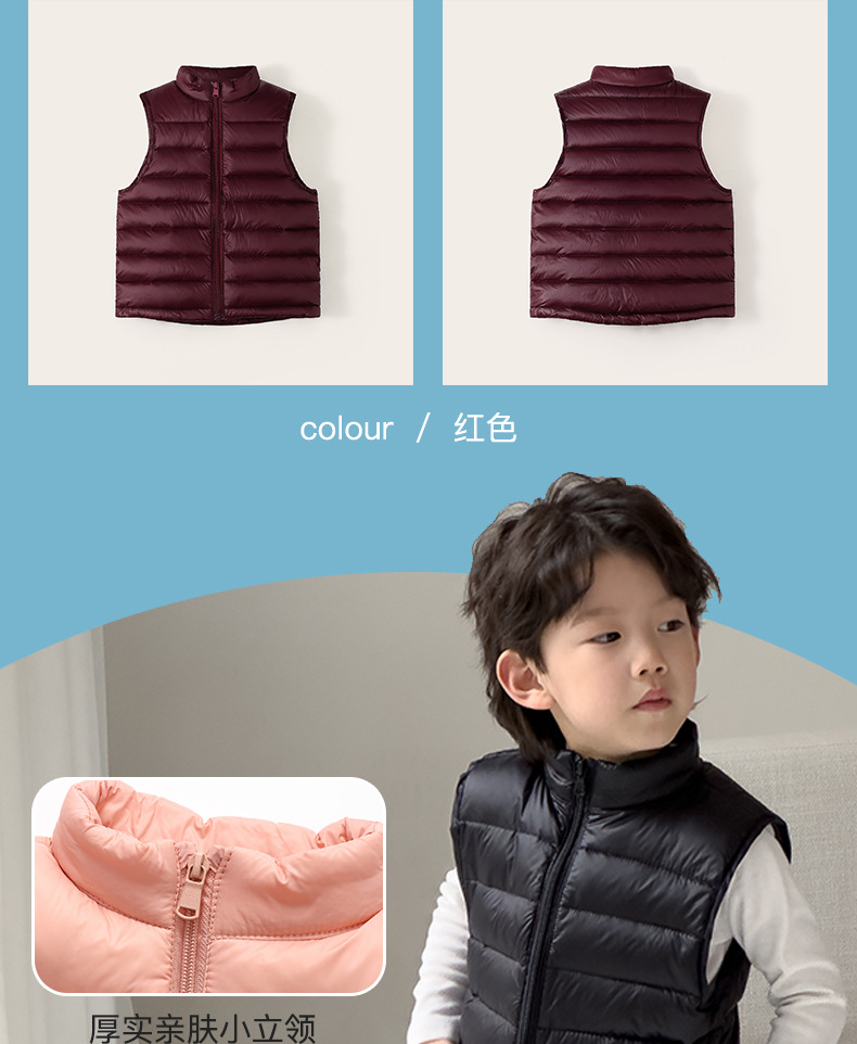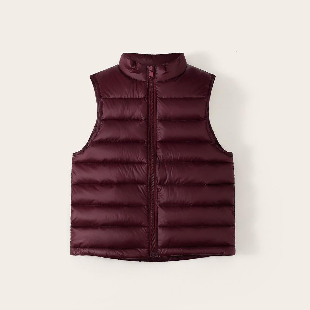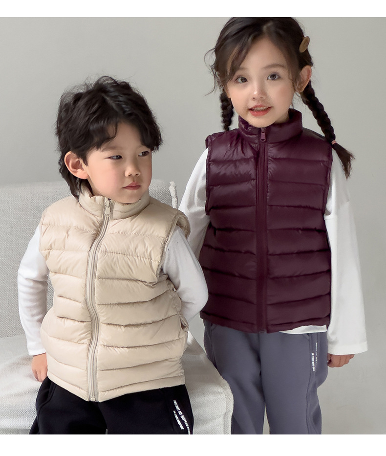 Легкие жилеты для мальчиков и девочек на осень и зиму, для детей всех размеров, с воротником-стойкой, однотонные, теплые жилетки.