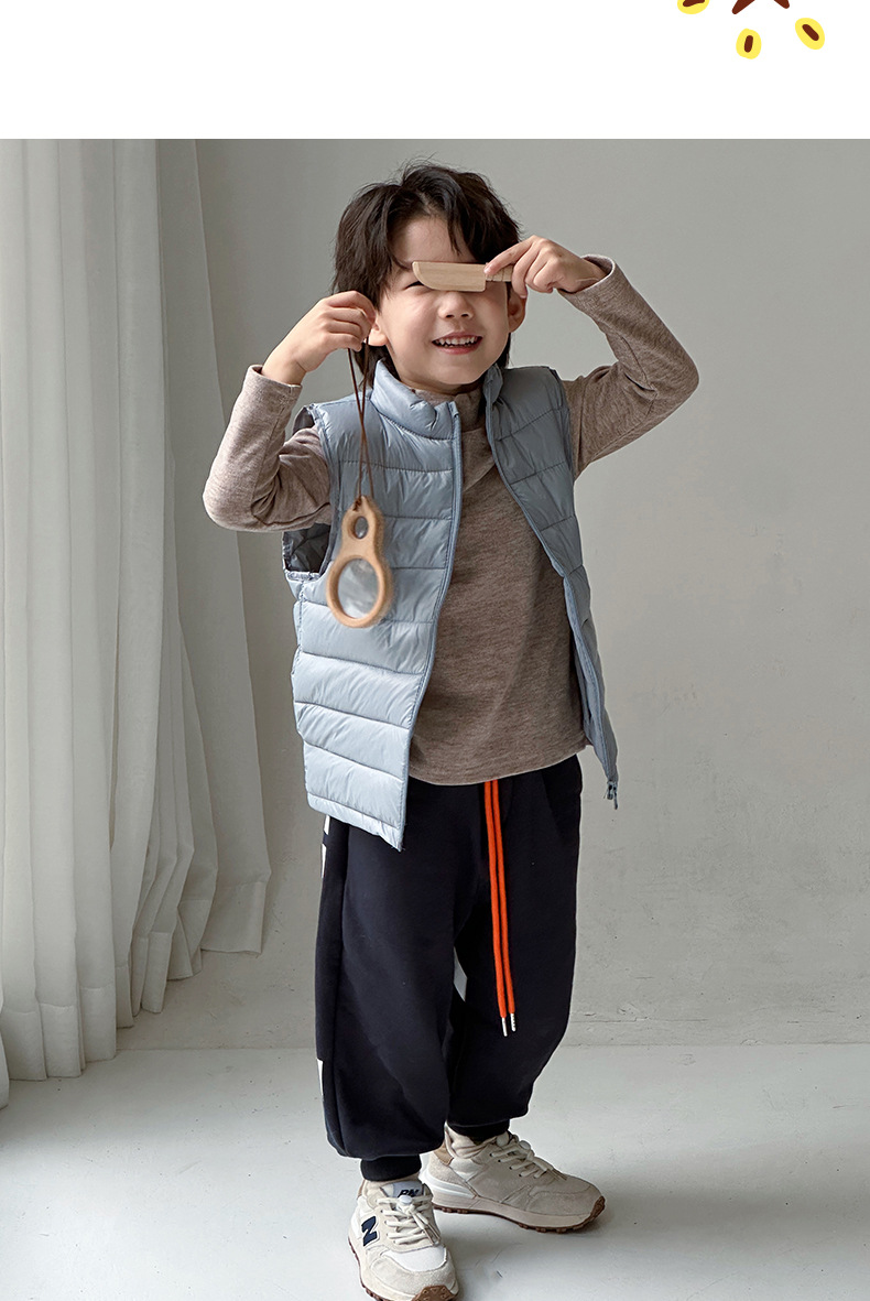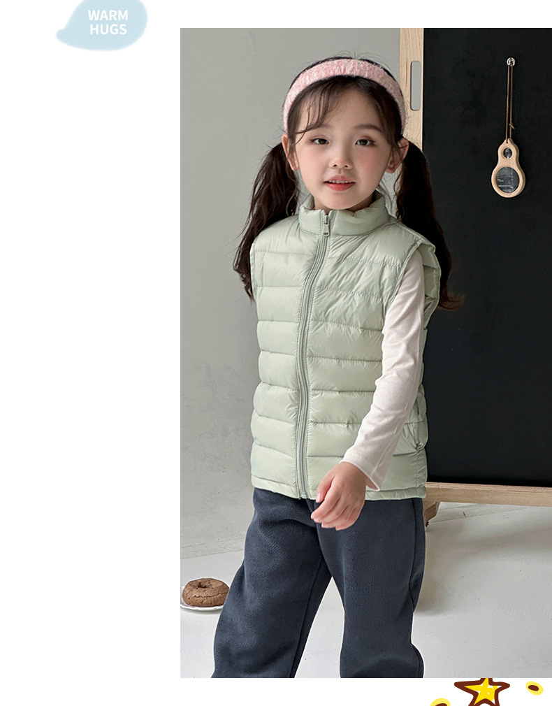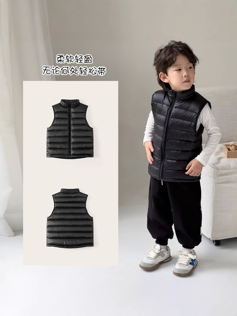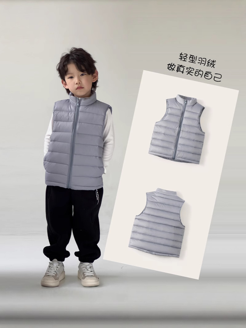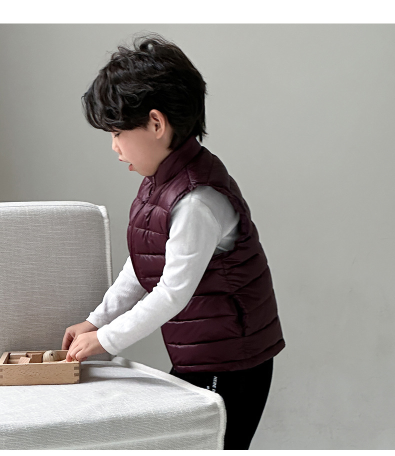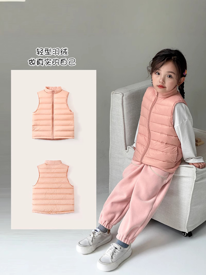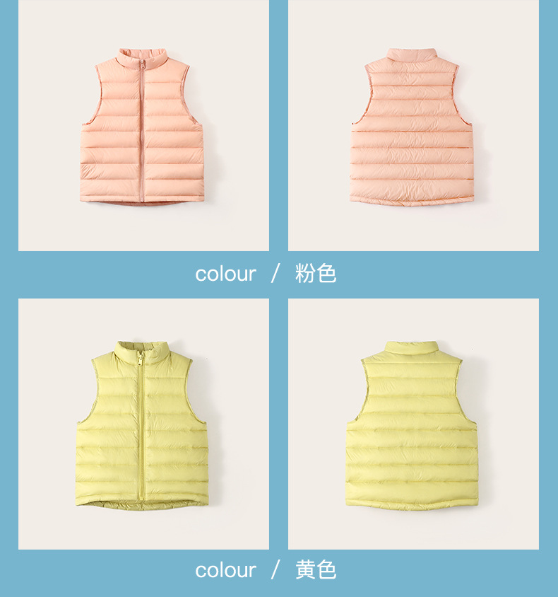 Легкие жилеты для мальчиков и девочек на осень и зиму, для детей всех размеров, с воротником-стойкой, однотонные, теплые жилетки.