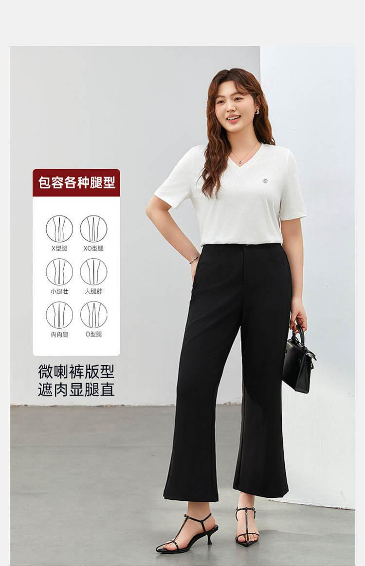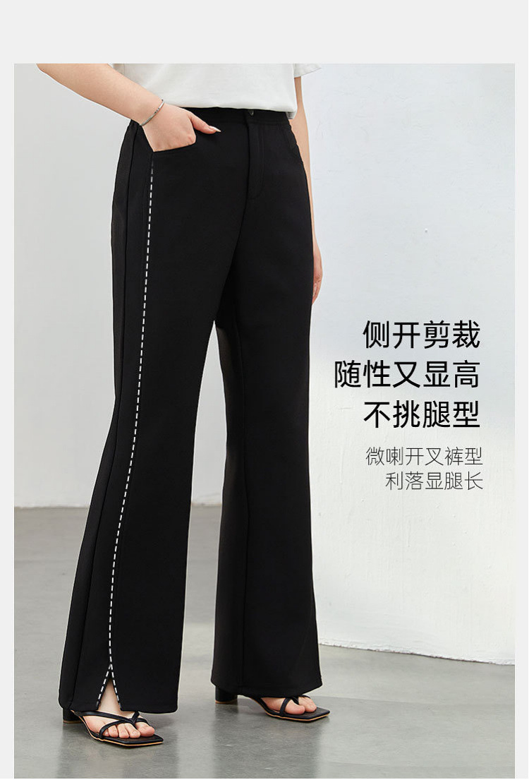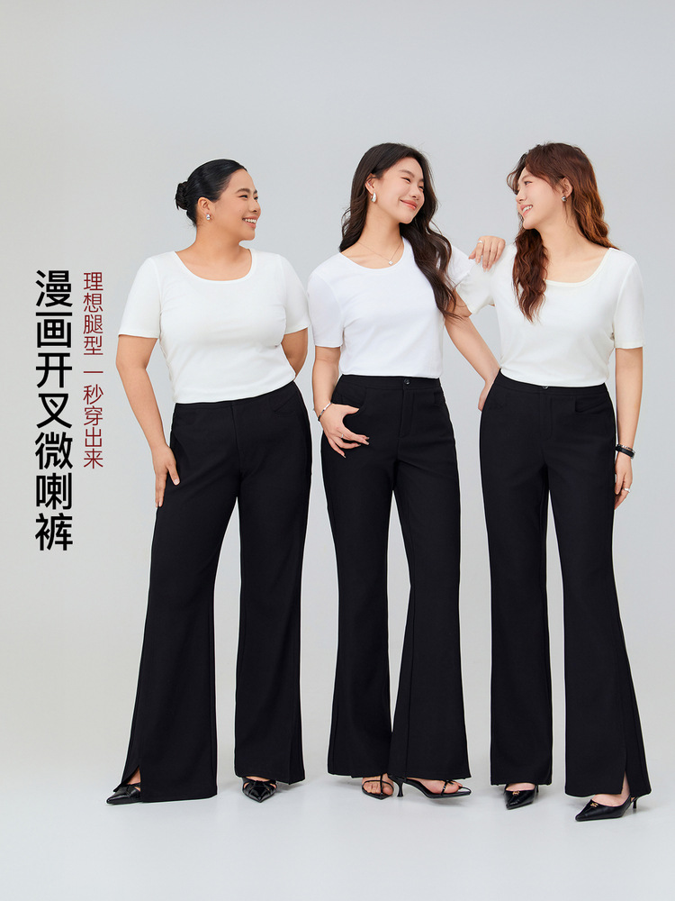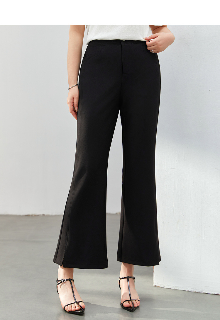 [Расклешенные брюки с разрезом на ногах] Zero Restraint Little Black Pants Slim Show Женская одежда больших размеров Fat MM Лето Новый стиль