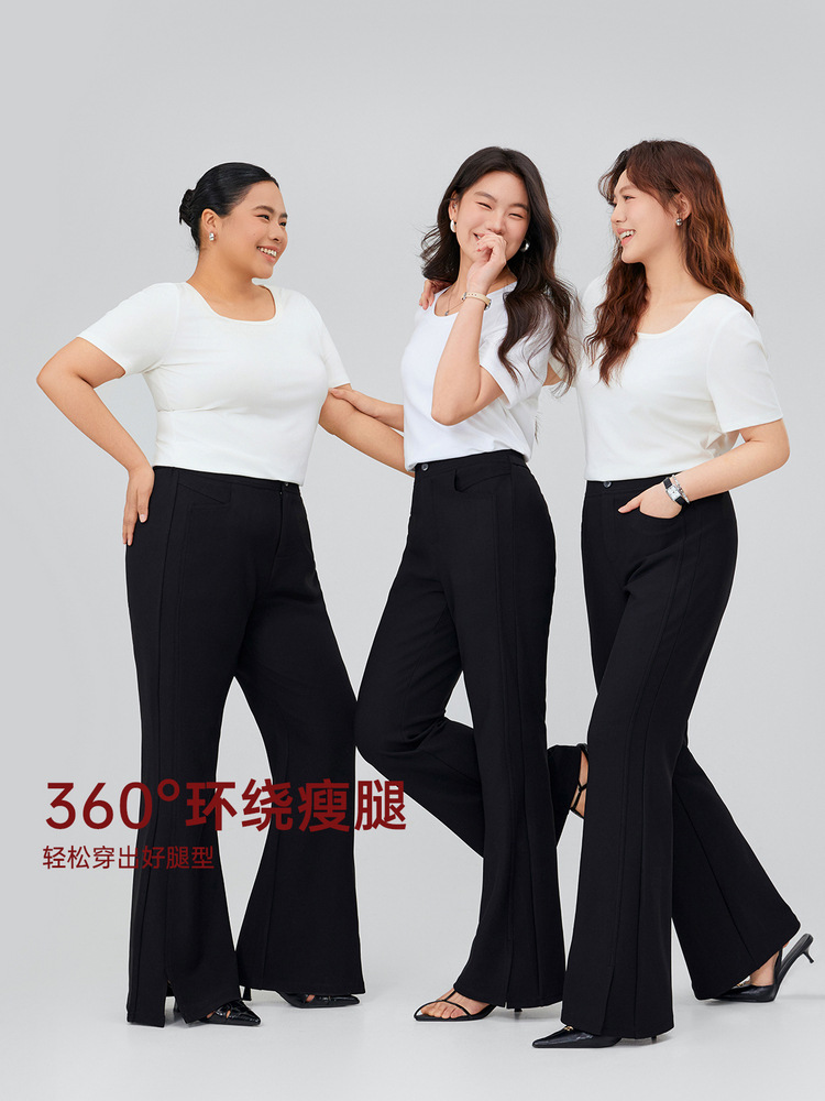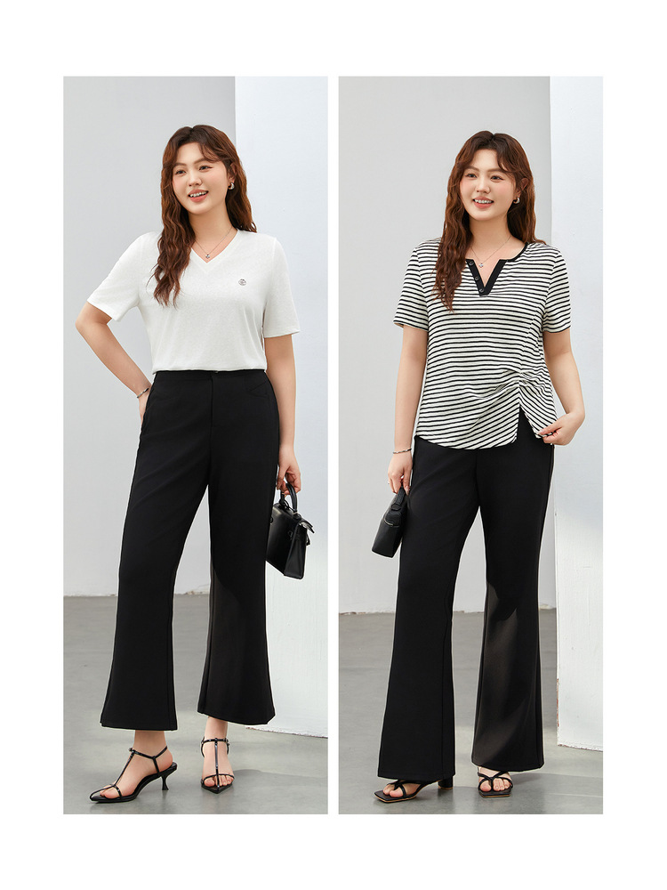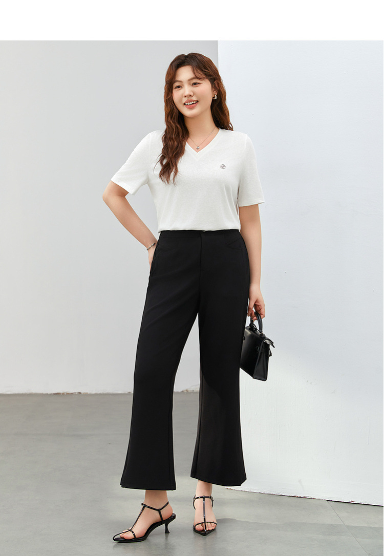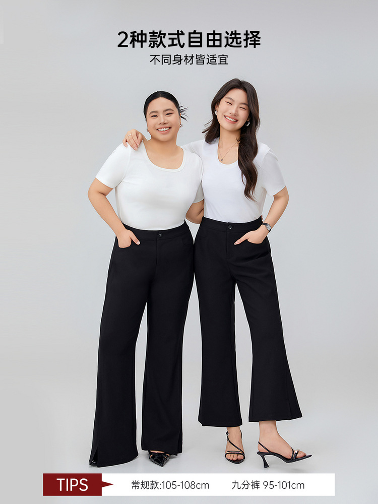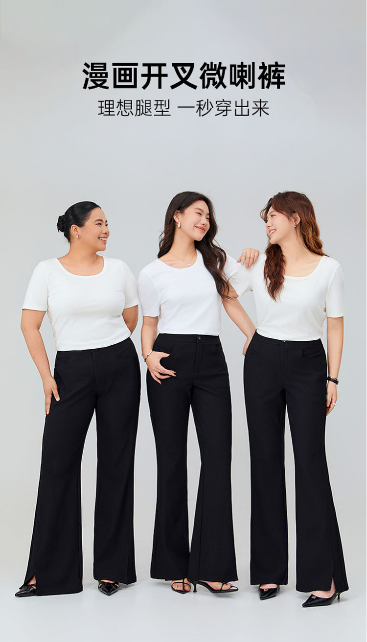 [Расклешенные брюки с разрезом на ногах] Zero Restraint Little Black Pants Slim Show Женская одежда больших размеров Fat MM Лето Новый стиль