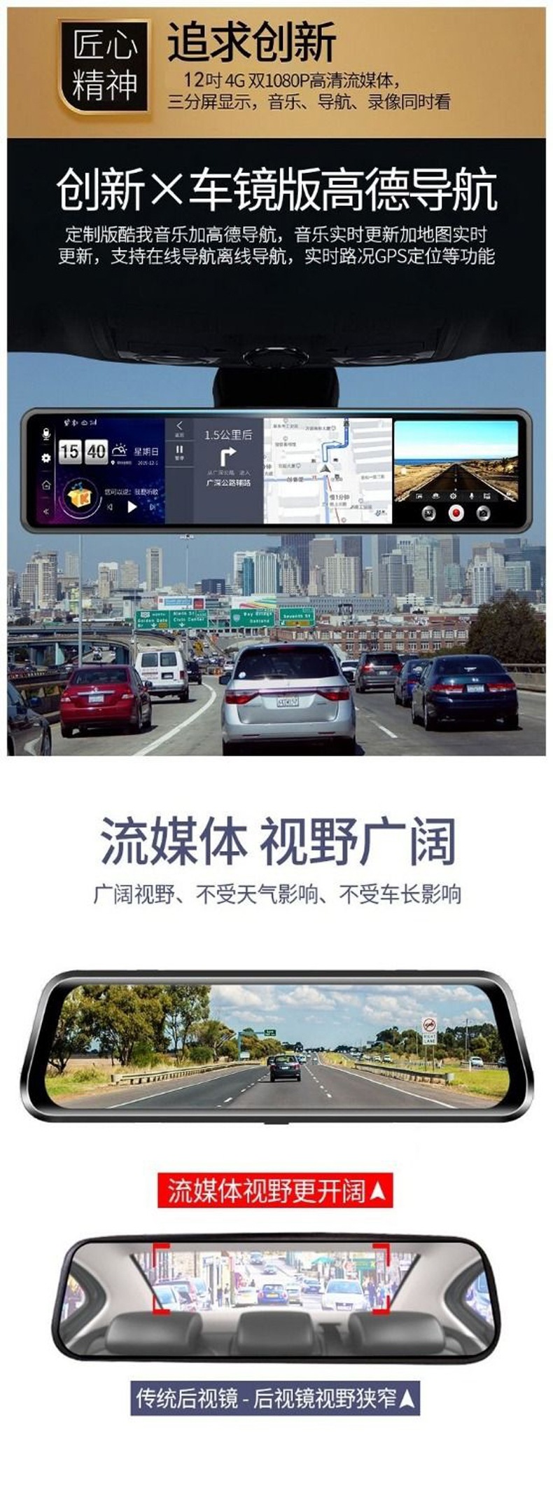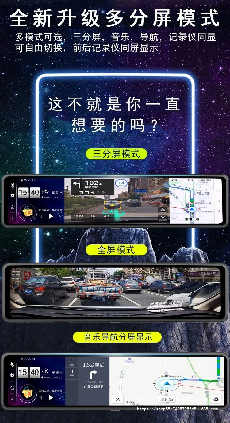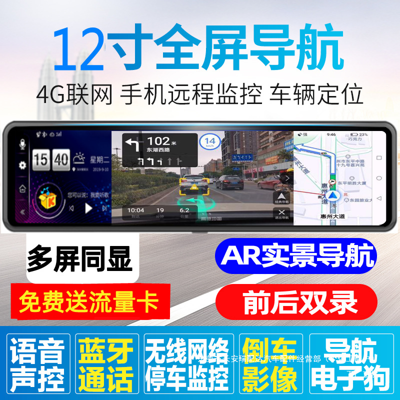 Новинка 12inch года, видеорегистратор 4G, полноэкранный HD, умное зеркало заднего вида, навигация, электронные аксессуары для собак Yirui