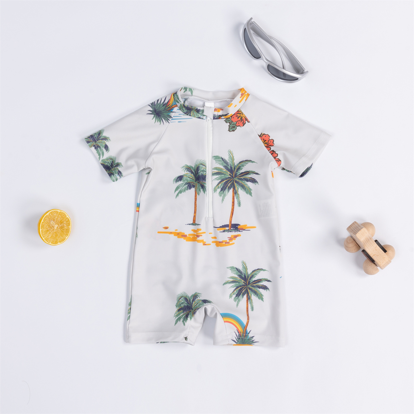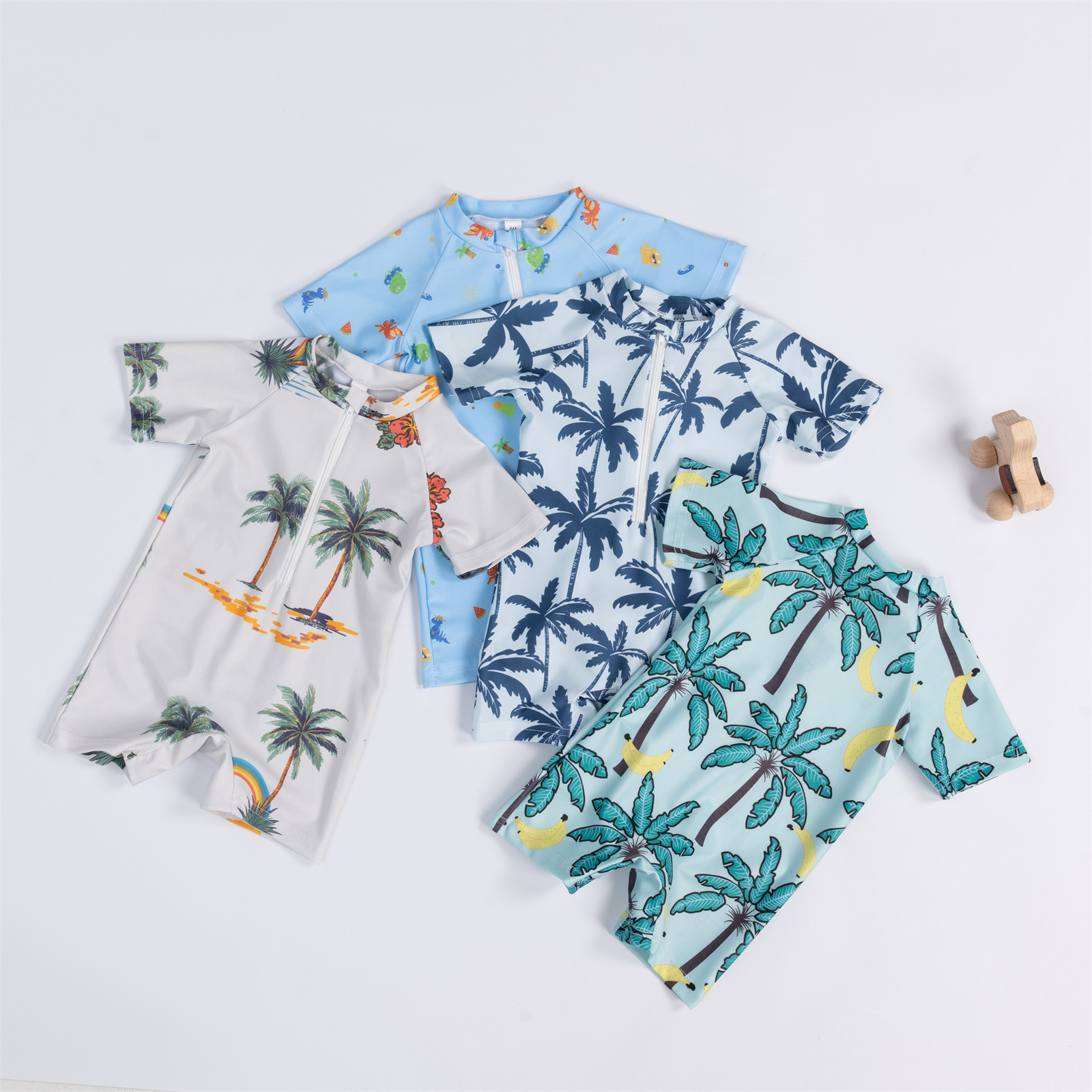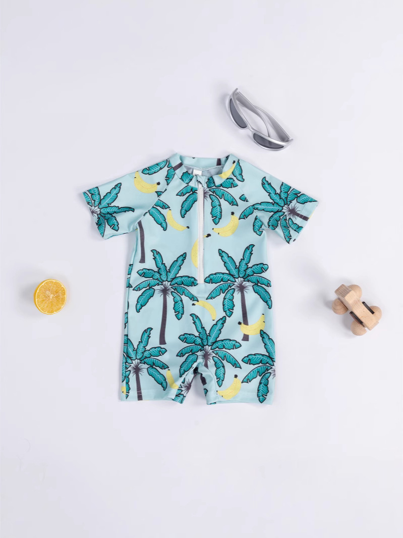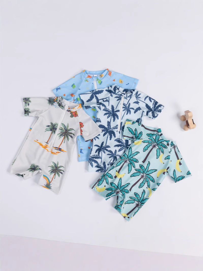 Трансграничная детская одежда мальчик кокосовая пальма полная печать цельный купальник мальчик ребенок полукардиган детский купальник 0-3T