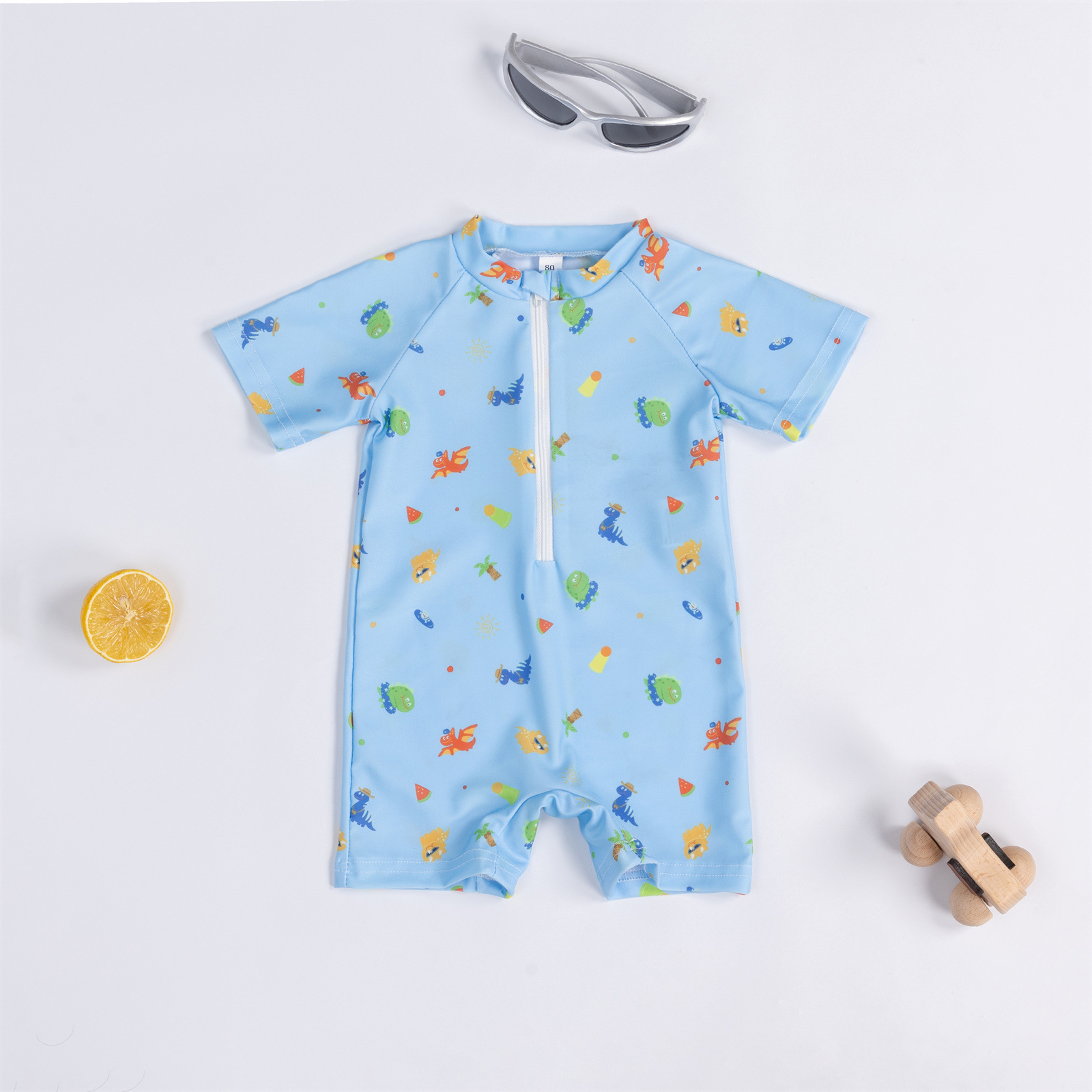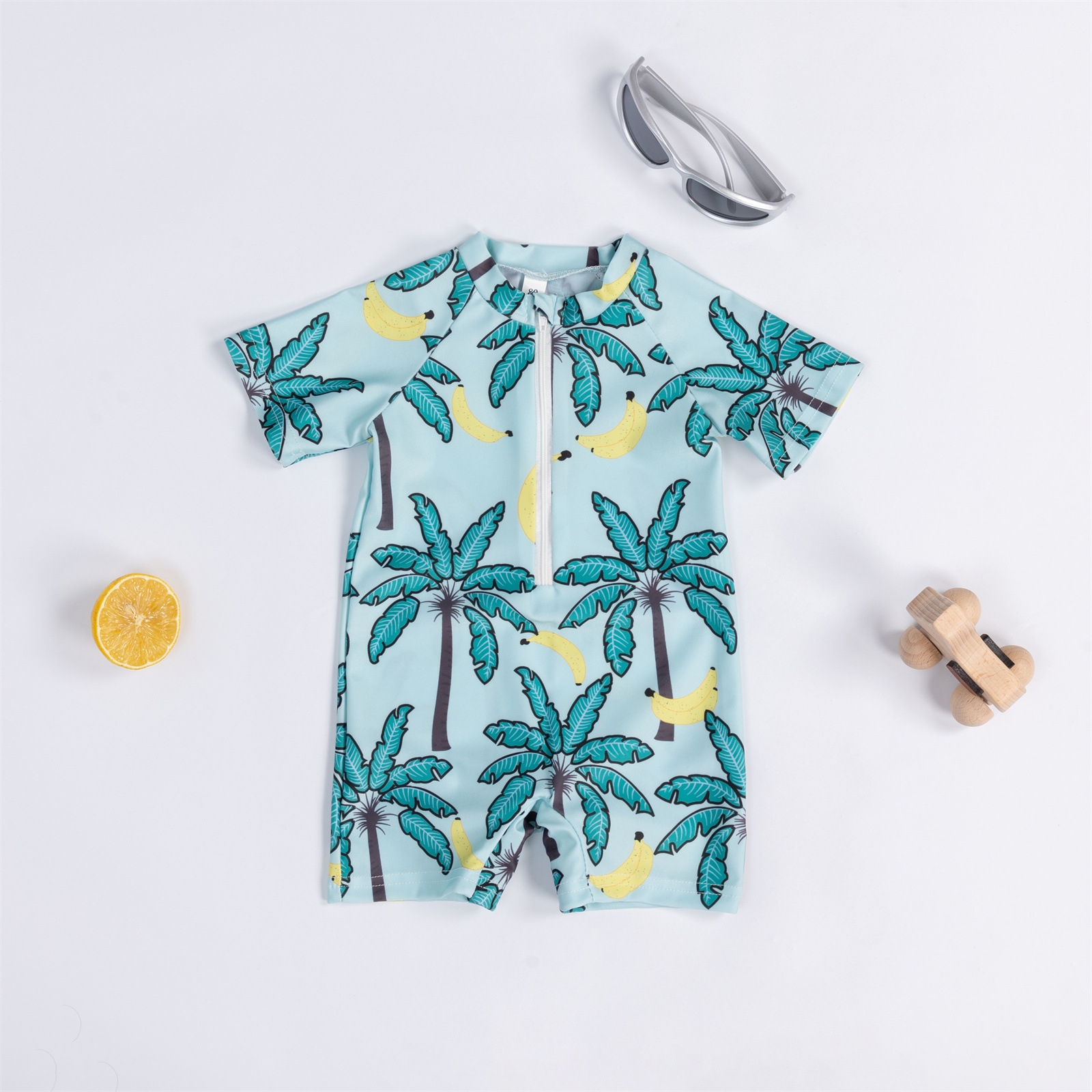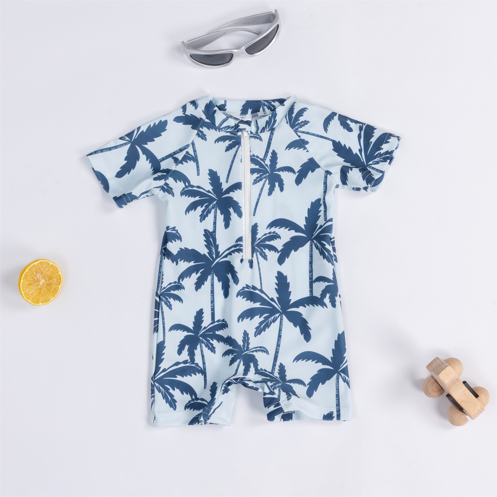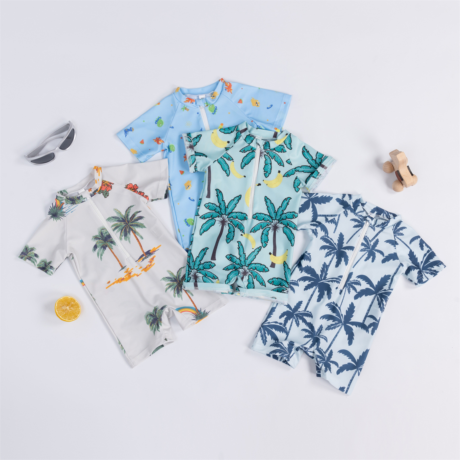 Трансграничная детская одежда мальчик кокосовая пальма полная печать цельный купальник мальчик ребенок полукардиган детский купальник 0-3T