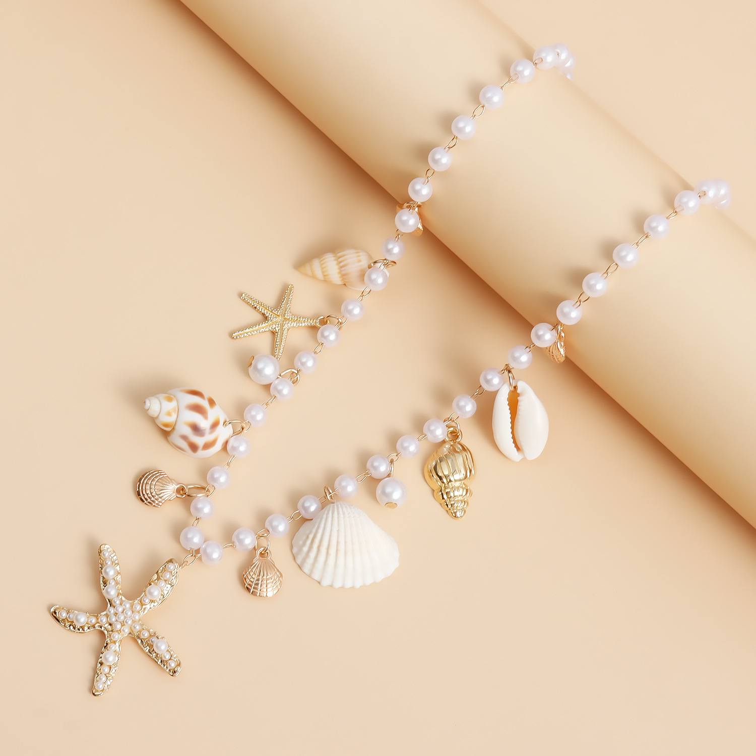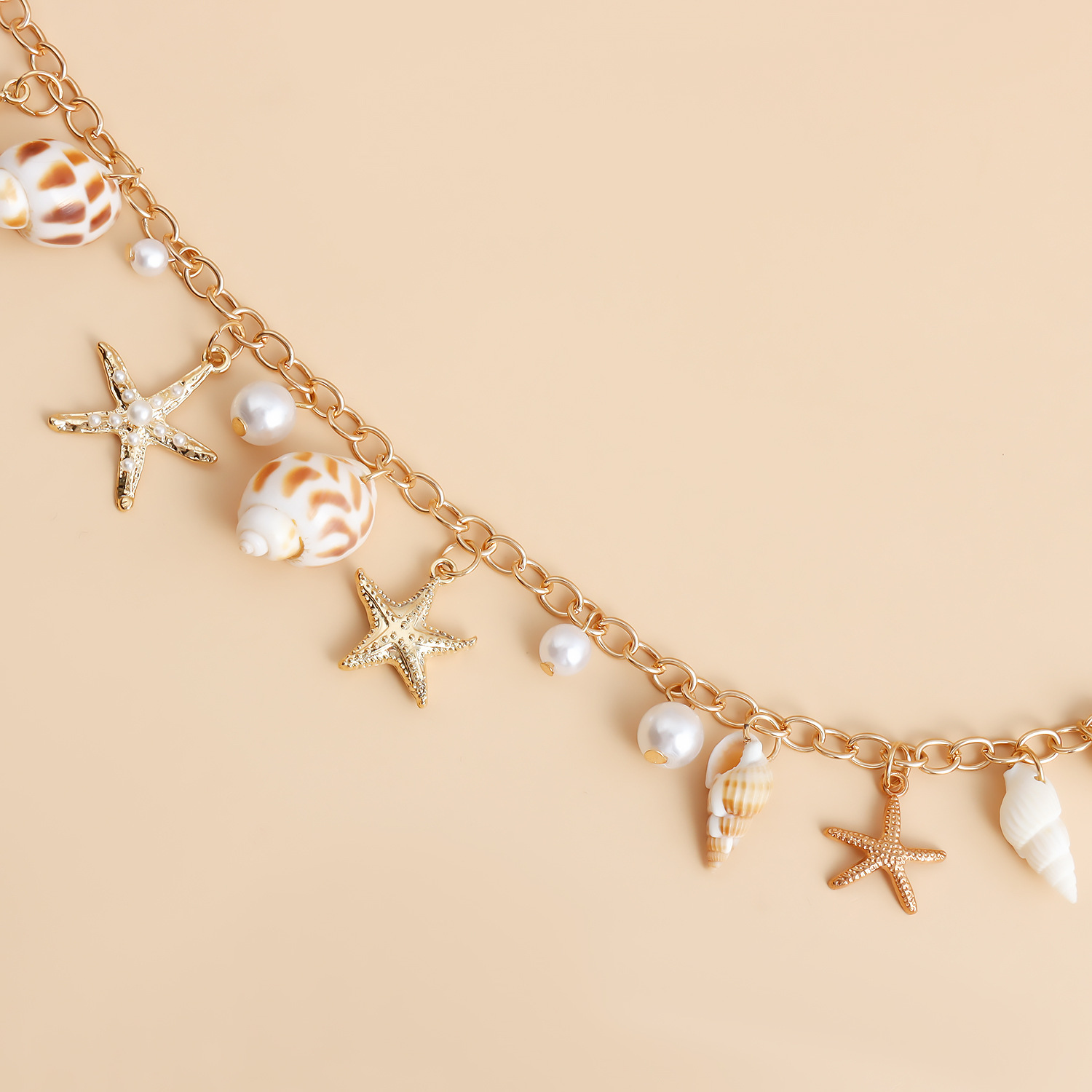 Богемская летняя пляжная оболочка поясная цепь Приморский туризм имитация жемчужная морская звезда раковина подвеска тело цепи Европа и Америка