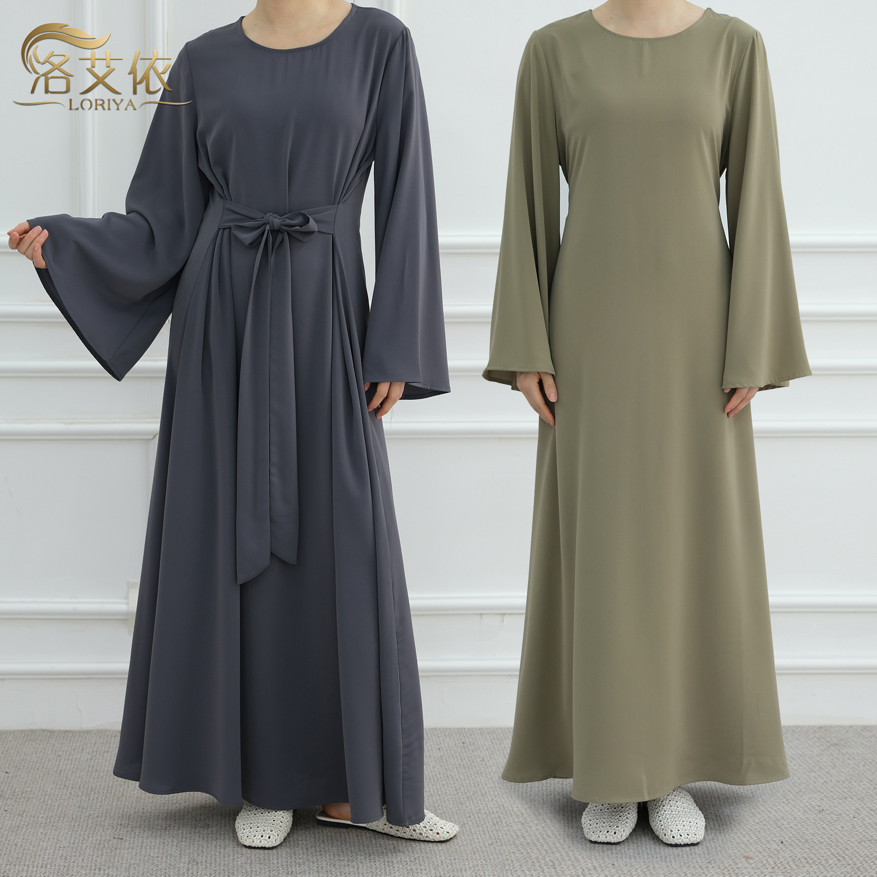 2025Loriya AliExpress tiktok Amazon Ближневосточное минималистичное платье сплошного цвета abayaLR1002