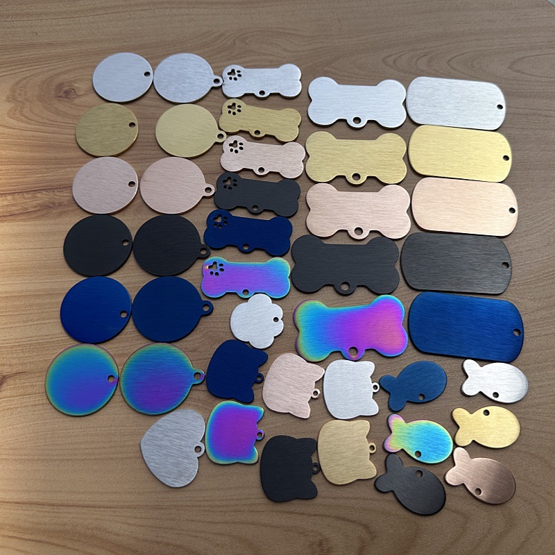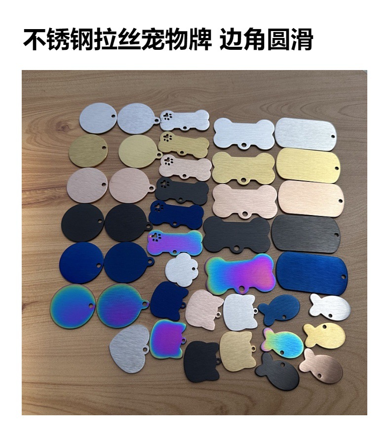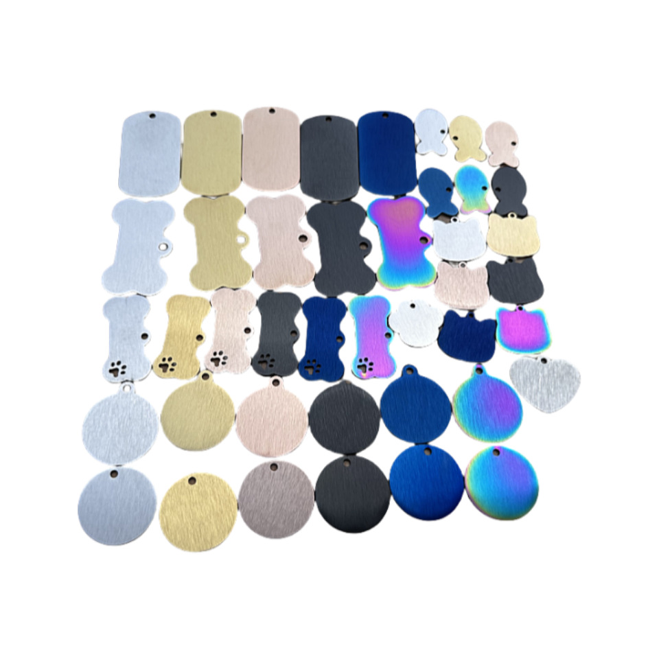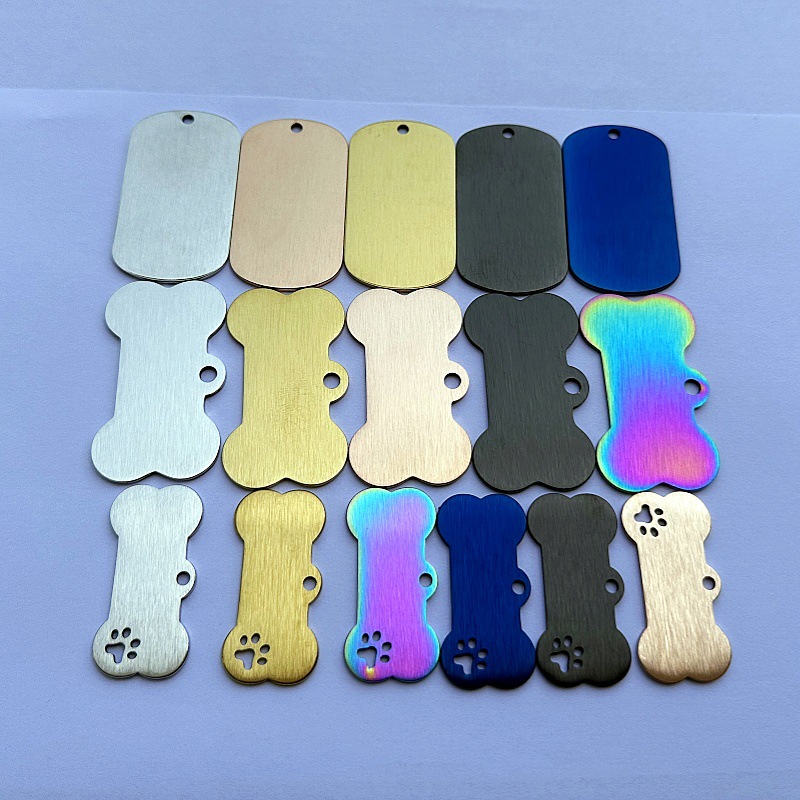 Оптовая продажа брелоков для собак из матовой нержавеющей стали с шлифованной поверхностью, металлических бирок для питомцев из титановой стали, DIY бирок для гравировки собак и кошек