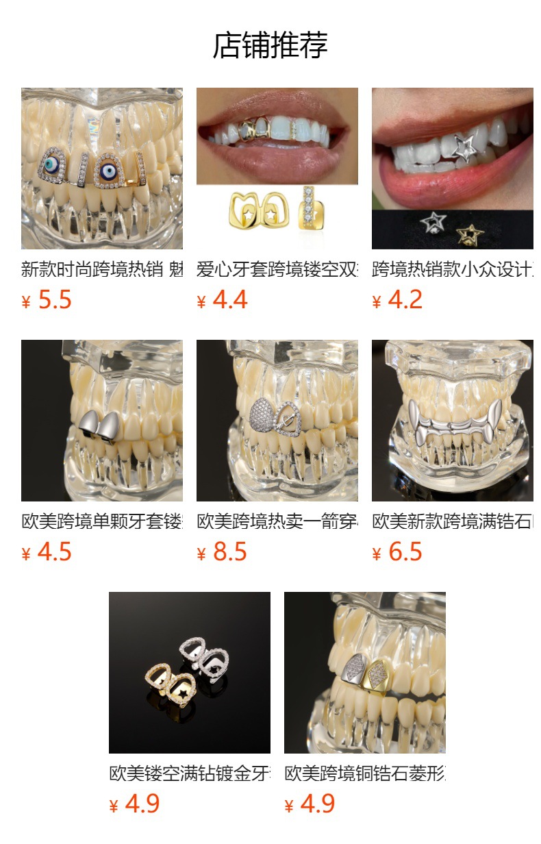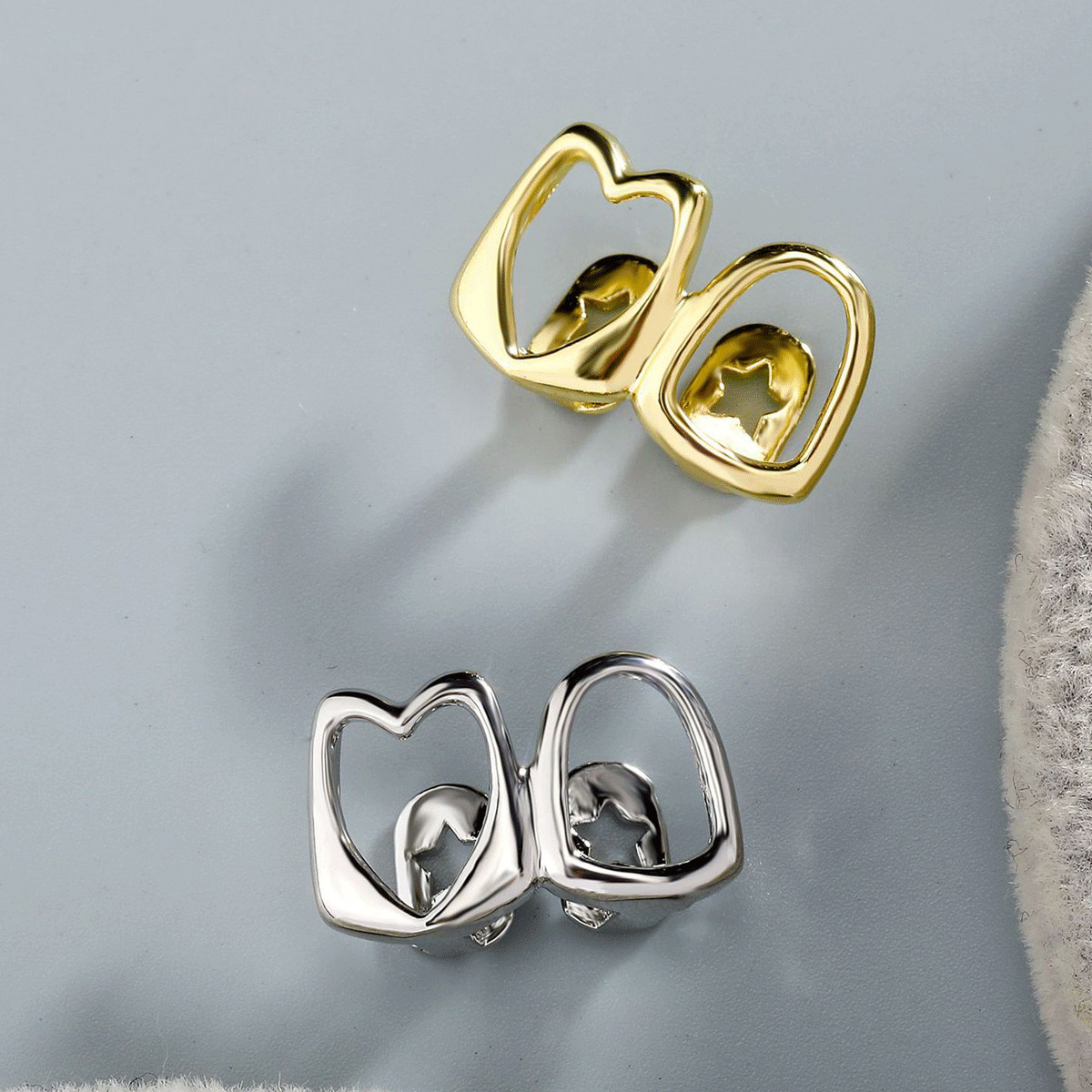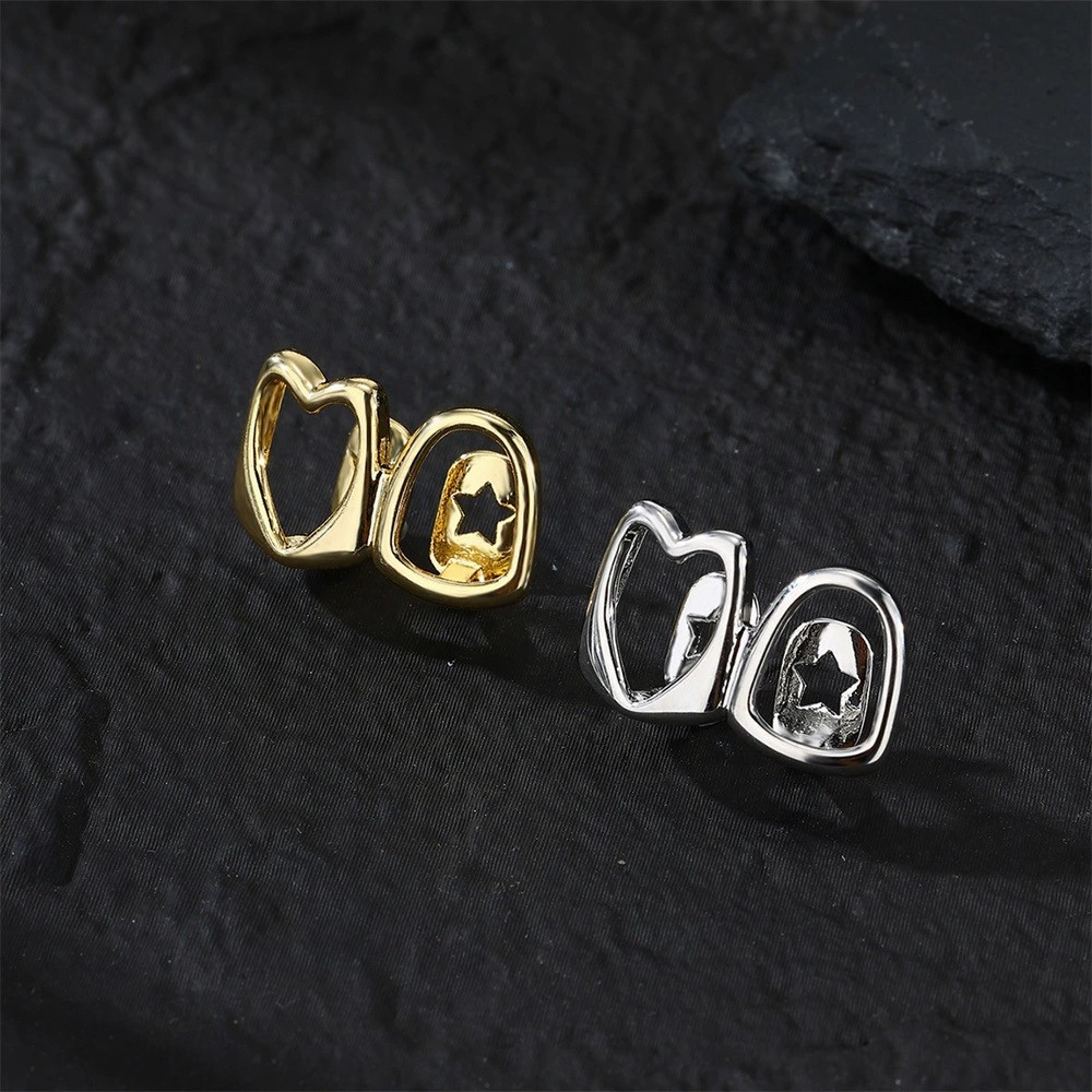 Трансграничные горячие продажи одиночных брекетов модная личность асимметричная сердцевидная отделка зубов холодный ветер хип-хоп брекеты спот