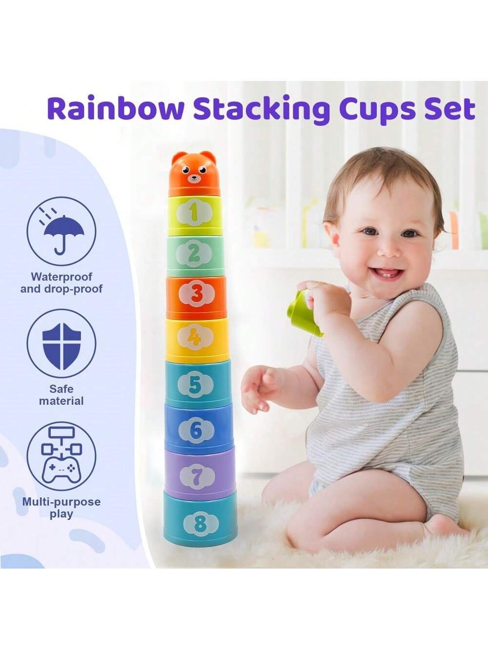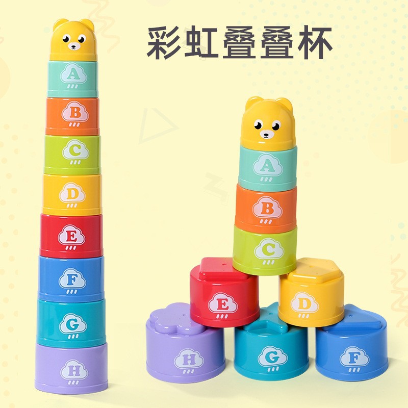 Популярная трансграничная штабелируемая чашка, радужная башня, детская развивающая игрушка для раннего образования, детская игрушка для концентрации, детская штабелируемая чашка, штабелируемая игрушка