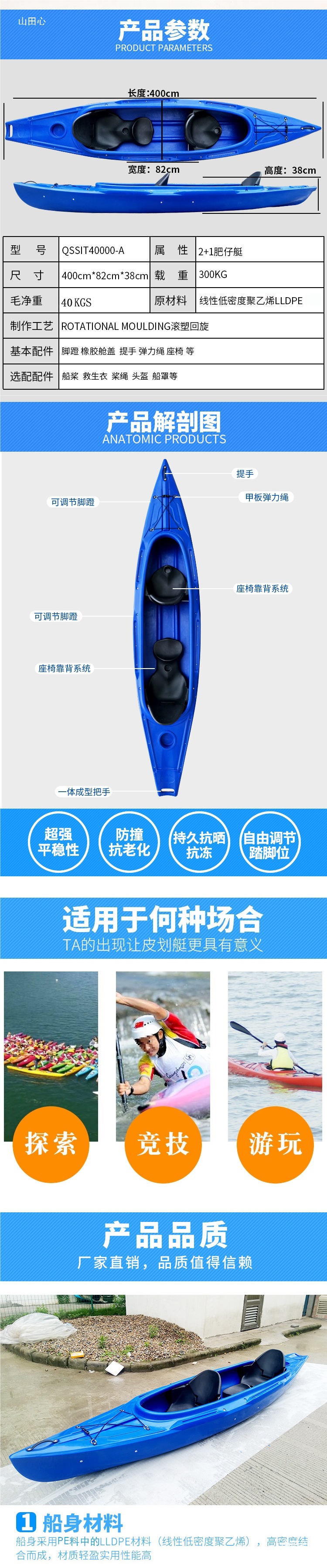 Каяк 2+1 Fat Boy Boat, двухместная лодка-каноэ из ротоформованного материала, жесткая лодка для двоих, туристическая лодка с защитой от столкновений, небольшой каяк.