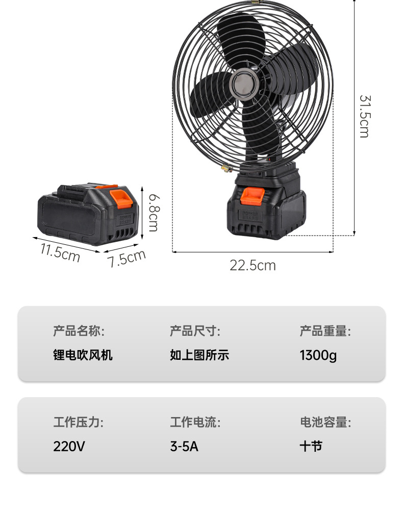 Беспроводной вентилятор с литиевой батареей (голый металл); Беспроводной вентилятор с литиевой батареей (5 ячеек, одна зарядка, одна зарядка); Беспроводной вентилятор с литиевой батареей (10 ячеек, один заряд, один заряд)