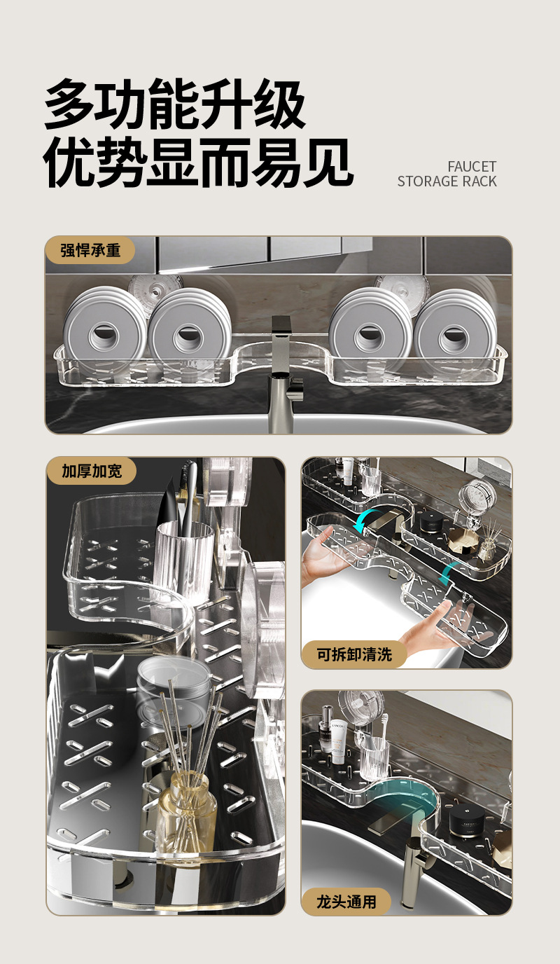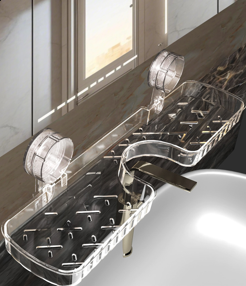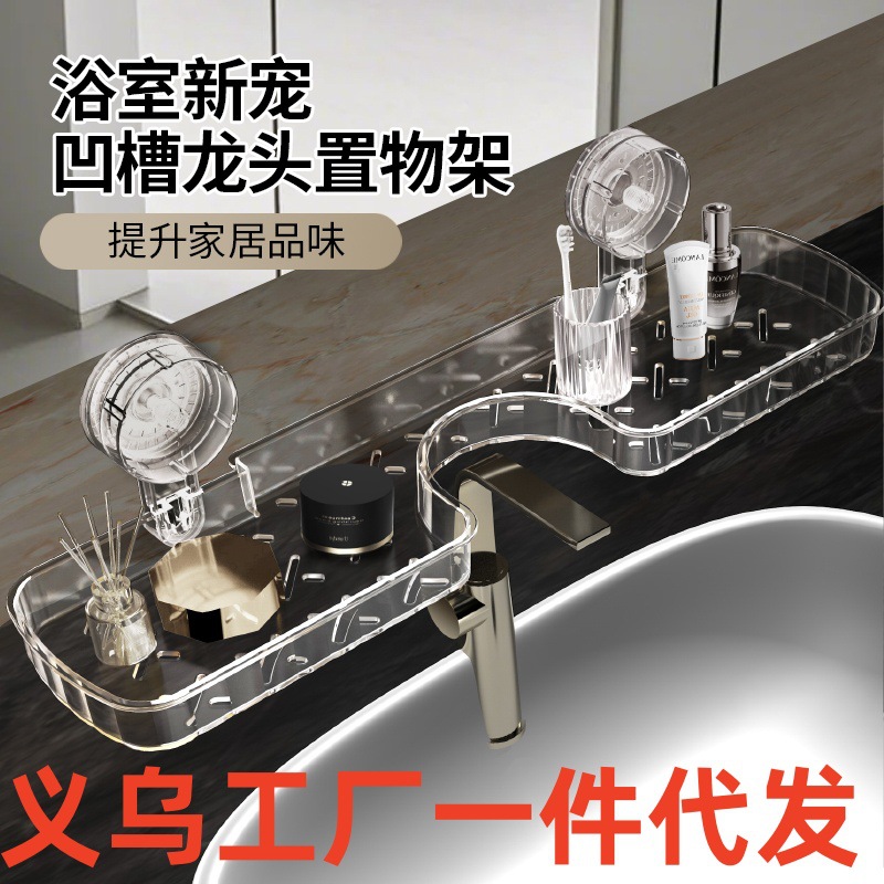 Стеллаж для хранения смесителя на присоске, легкая роскошная полка для хранения в ванной комнате без перфорации, бесследная полка для хранения на присоске, настенная съемная полка для хранения