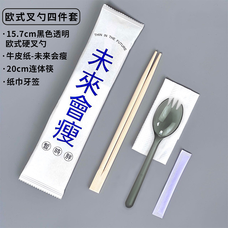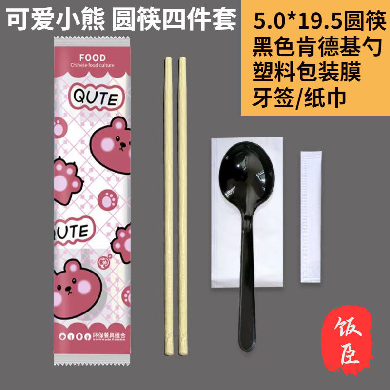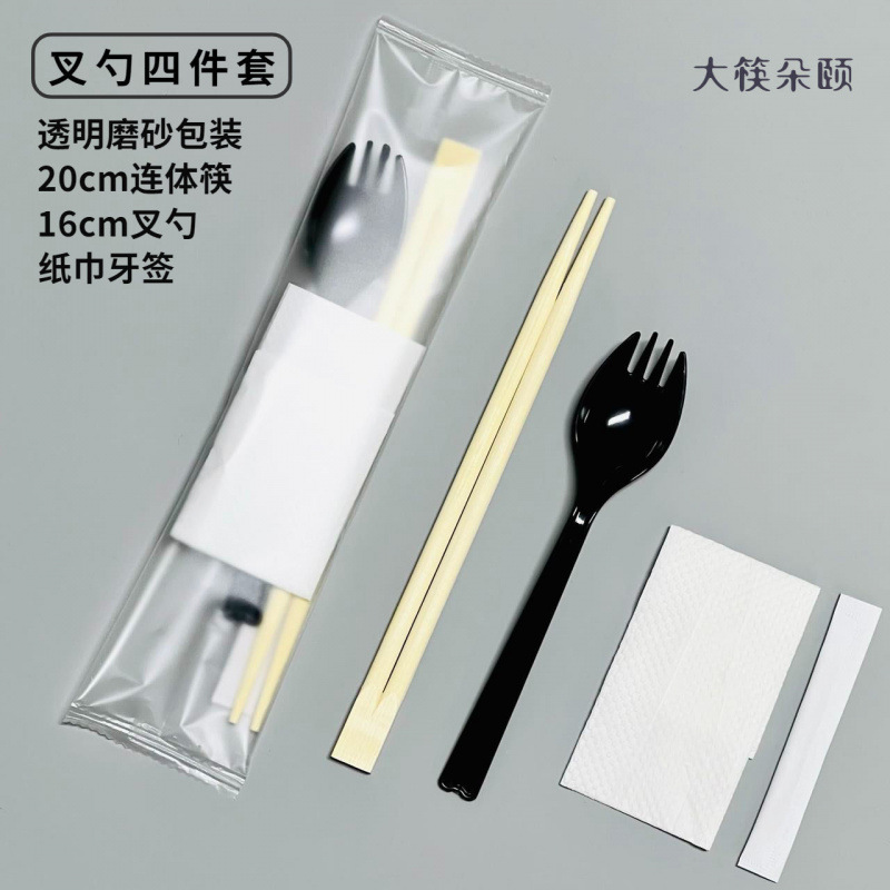 Одноразовые палочки для еды, набор из четырех предметов, упаковка для фаст-фуда, посуда, набор палочек для еды, коммерческий набор «четыре в одном», оптовая продажа Amazon