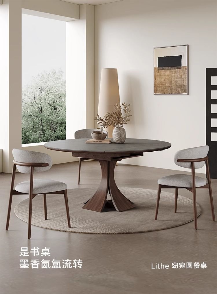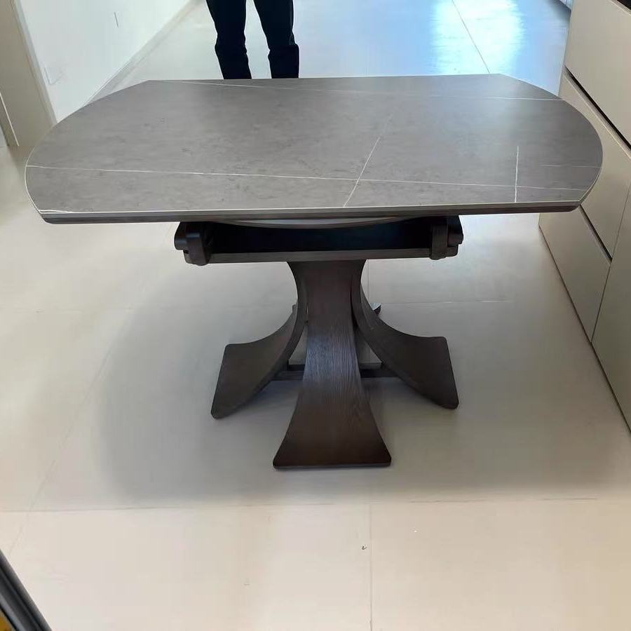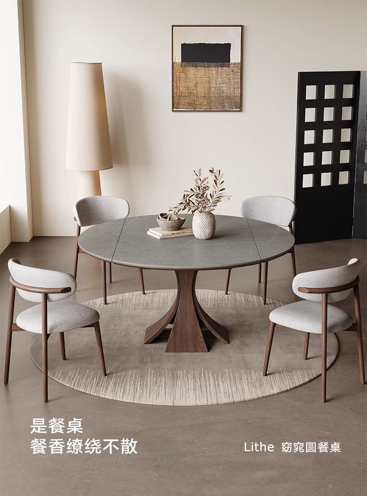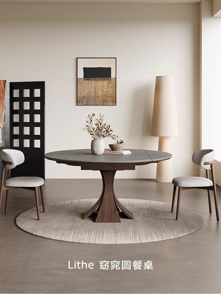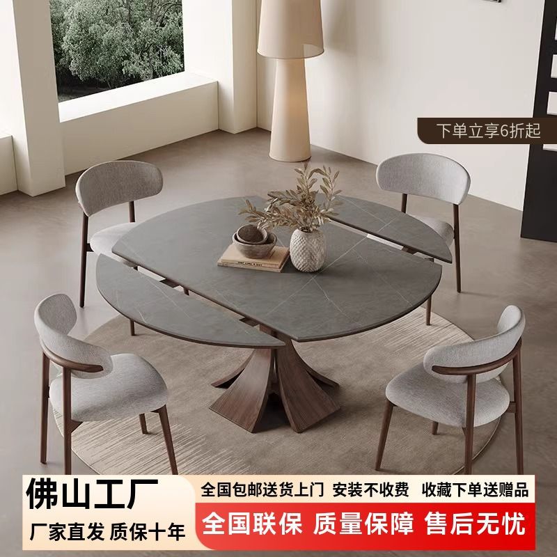 Телескопический обеденный стол из массива дерева, светлый, роскошный, современный, простой, для дома, для маленькой квартиры, итальянский стиль ваби-саби, квадратный и круглый круглый стол двойного назначения из сланца
