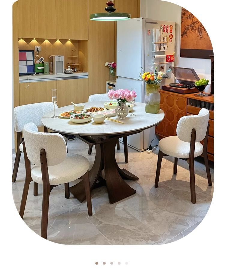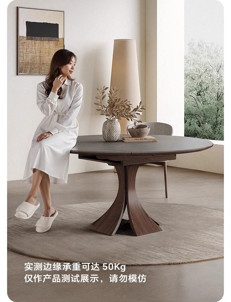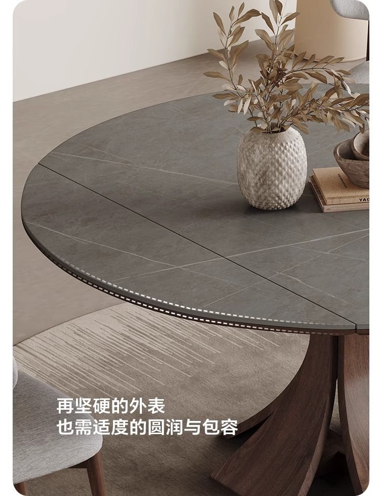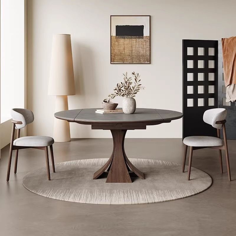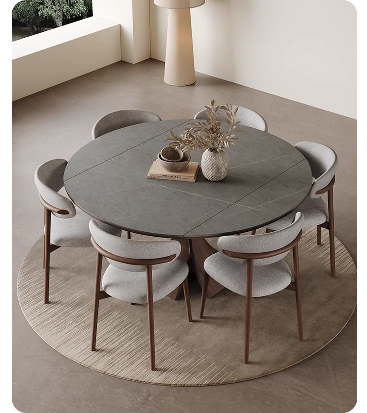Телескопический обеденный стол из массива дерева, светлый, роскошный, современный, простой, для дома, для маленькой квартиры, итальянский стиль ваби-саби, квадратный и круглый круглый стол двойного назначения из сланца