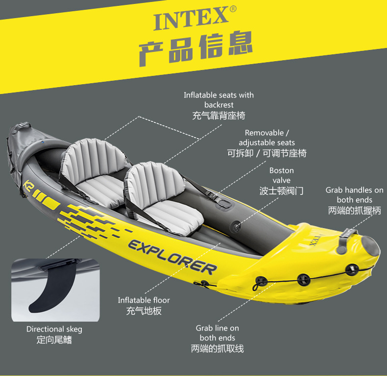 Надувная лодка для двоих Genuine Explorer, надувной плот для двоих, резиновая гребная лодка, надувная байдарка для двоих оптом.