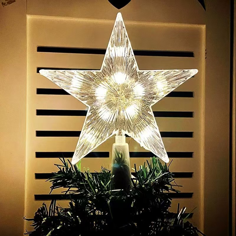 Трансграничная мечтательная романтическая рождественская креативная звезда, верхняя часть елки, яркое звездное небо, декоративный свет, теплая атмосфера, пятиконечная звезда