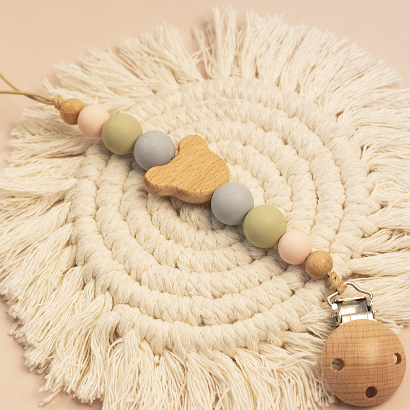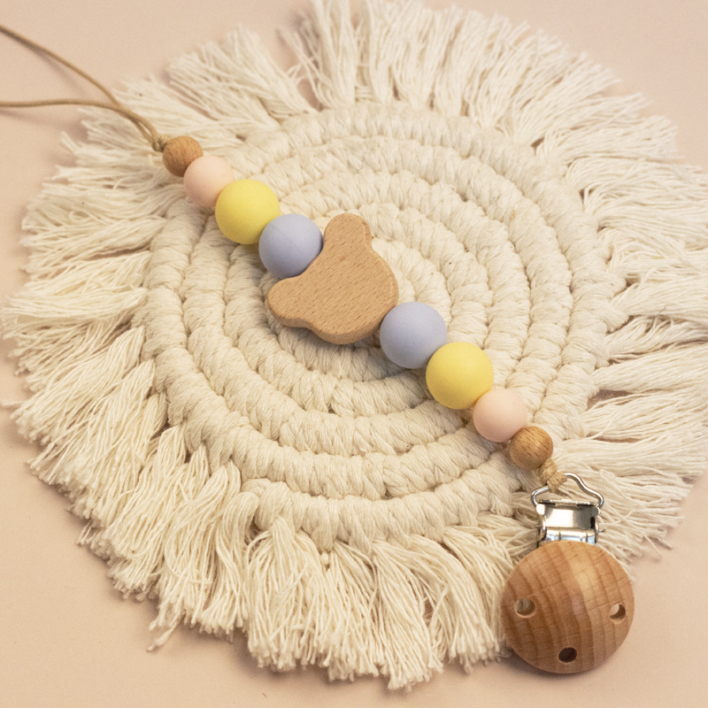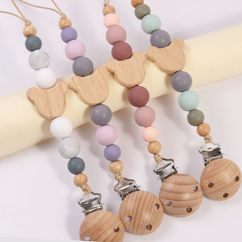 Цепочка для пустышки для малышей, милая успокаивающая цепочка против падения, силиконовый шарик, зажим для пустышки из бука, оптовая продажа игрушек от производителя