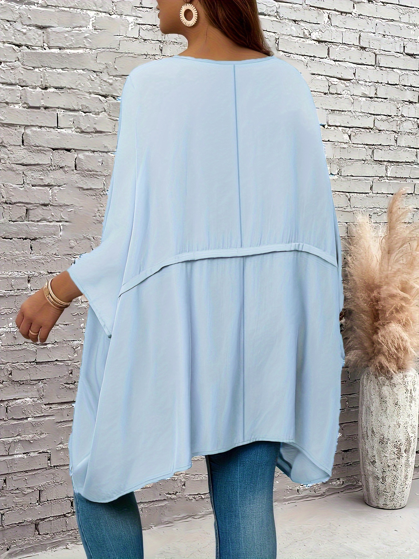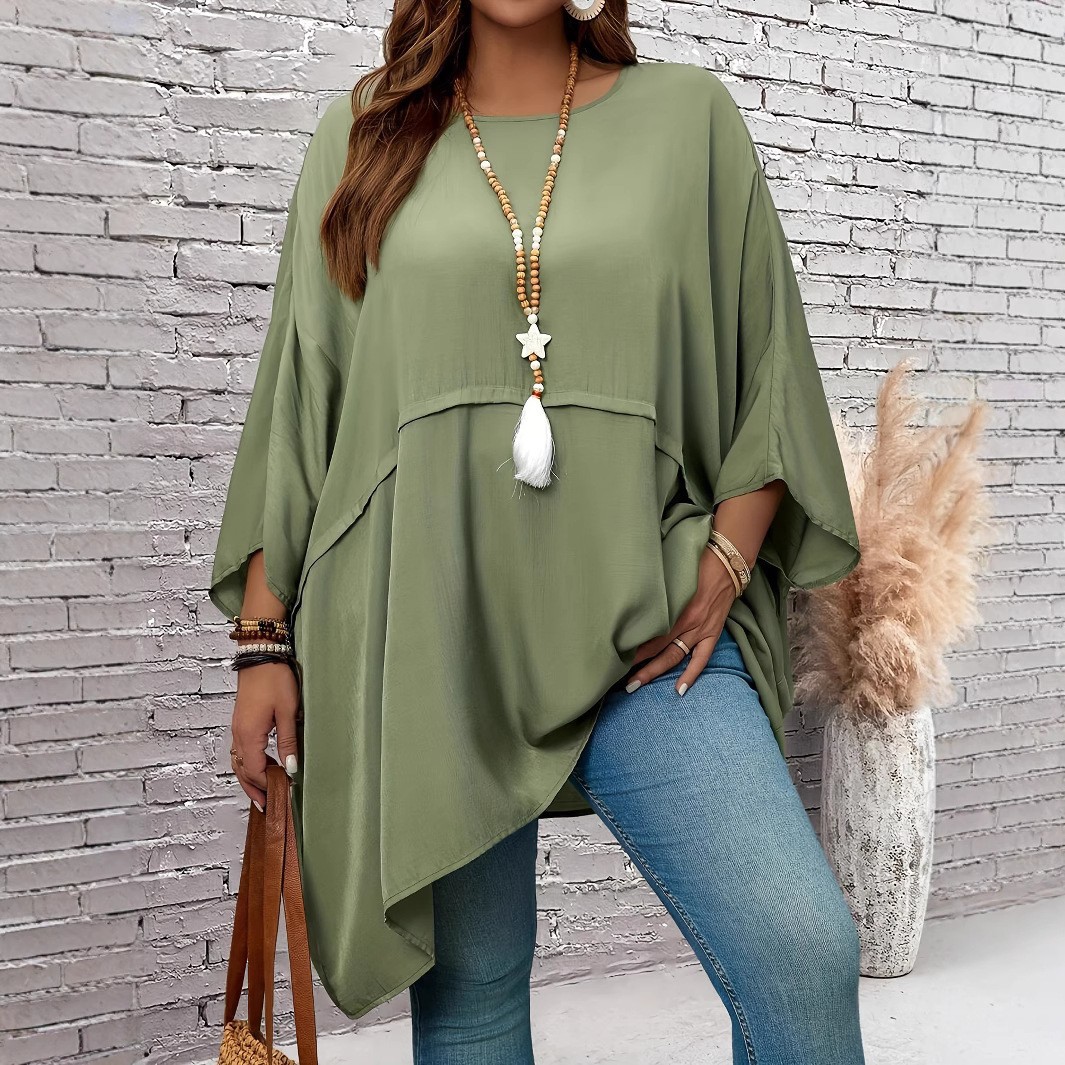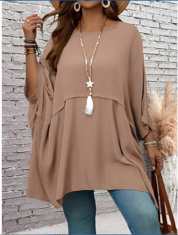 Европейская и американская одежда больших размеров для женщин, весенние, летние и осенние повседневные однотонные свободные топы с круглым вырезом и рукавами «летучая мышь», удобные рубашки.
