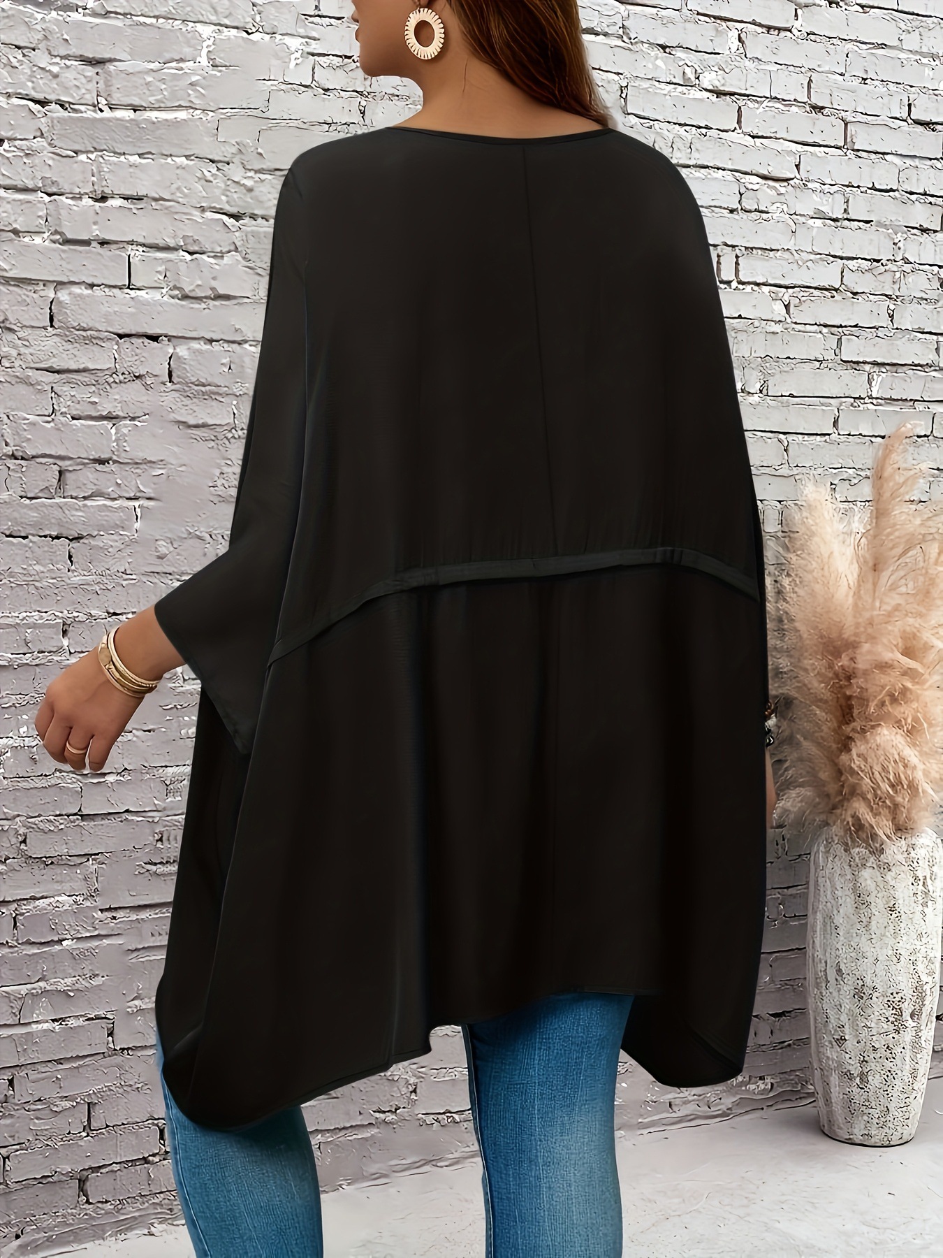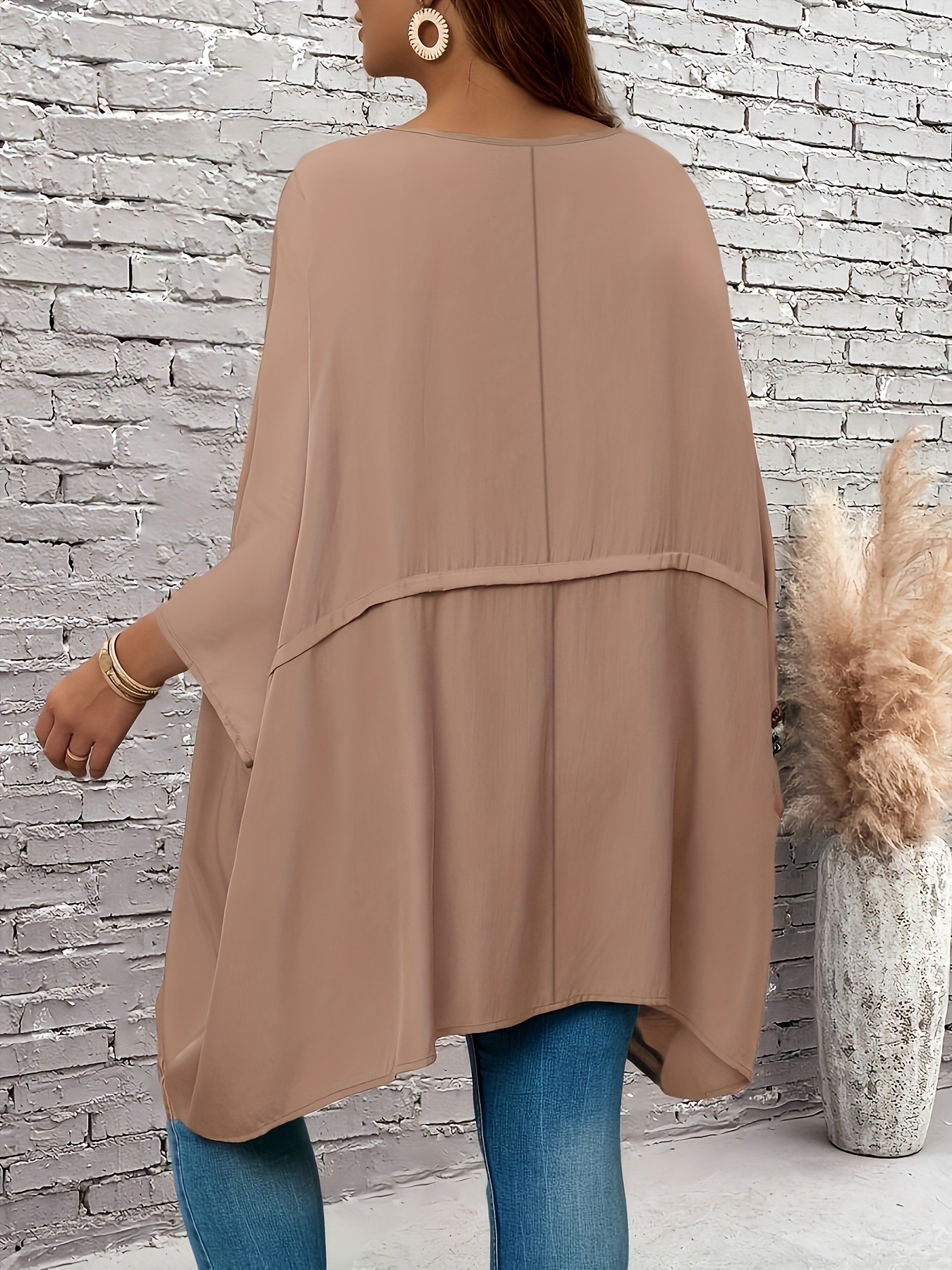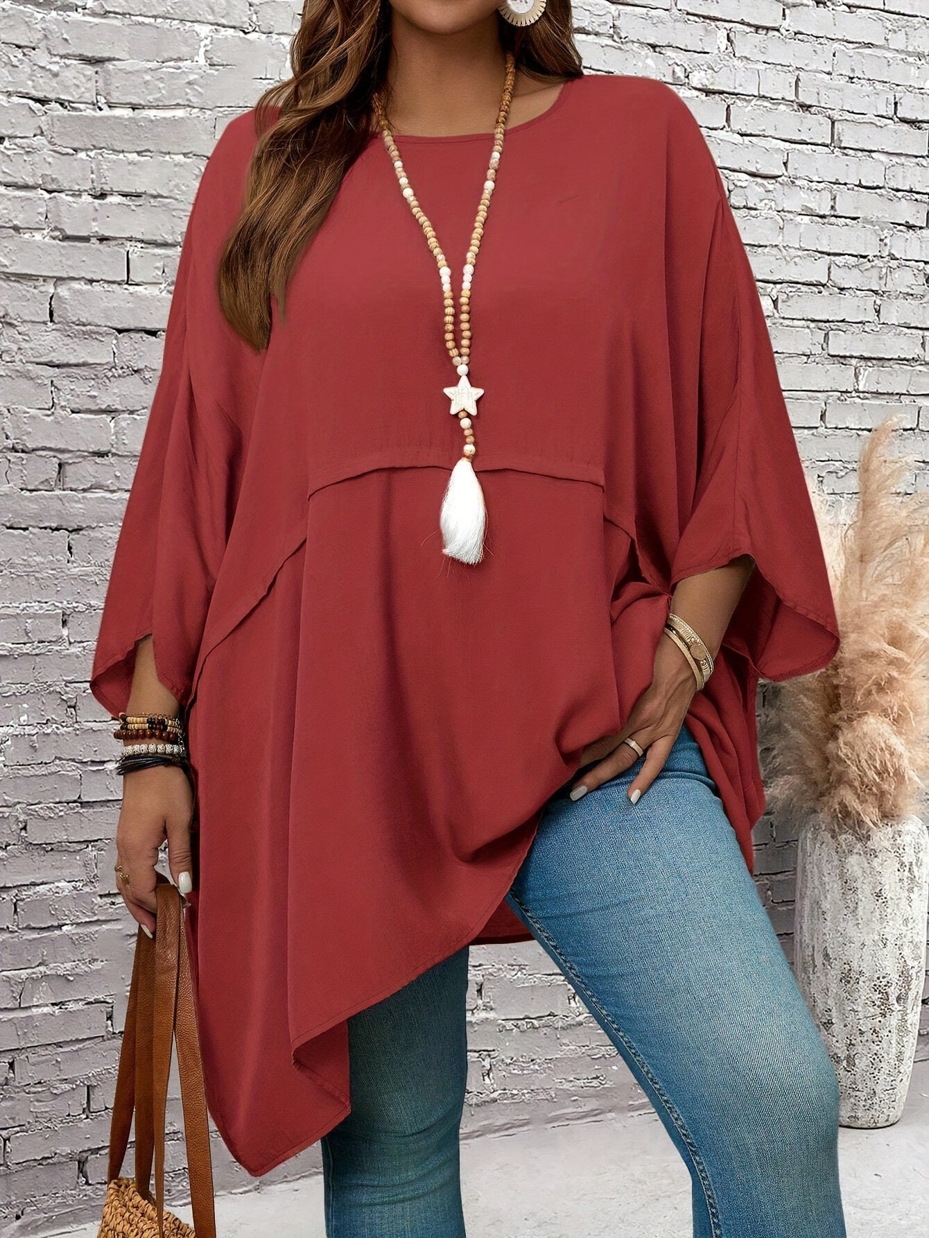 Европейская и американская одежда больших размеров для женщин, весенние, летние и осенние повседневные однотонные свободные топы с круглым вырезом и рукавами «летучая мышь», удобные рубашки.