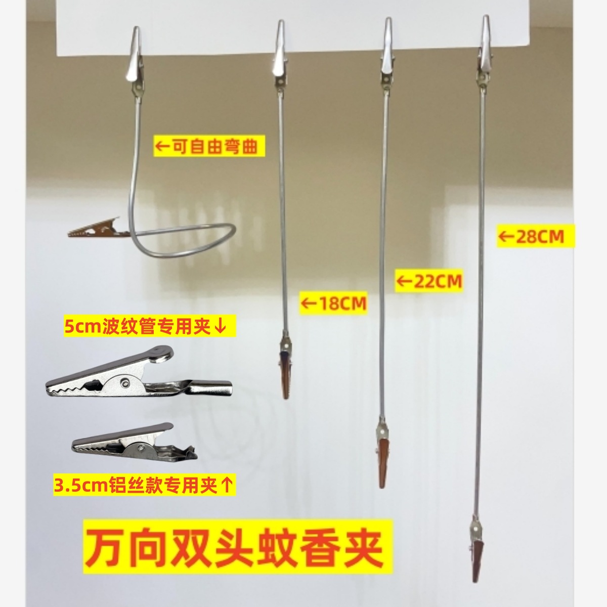 Общая длина 28 см, алюминиевая проволока, двусторонний зажим типа «крокодил»; Общая длина 22 см, алюминиевая проволока, двусторонний зажим типа «крокодил»; Общая длина 18 см, алюминиевая проволока, двусторонний зажим типа «крокодил»; Общая длина 28 см, универсальная трубка, двусторонний зажим типа «крокодил»; Общая длина 18 см, универсальная трубка, двусторонний зажим типа «крокодил»; Одинарный зажим типа «крокодил» 3,5 см [специально для алюминиевой проволоки]; Одинарный зажим типа «крокодил» шириной 5 см [для универсальной трубки]