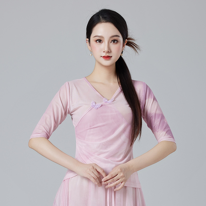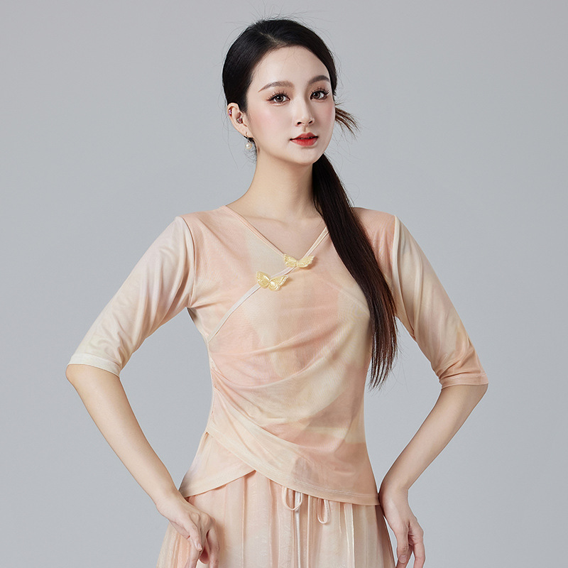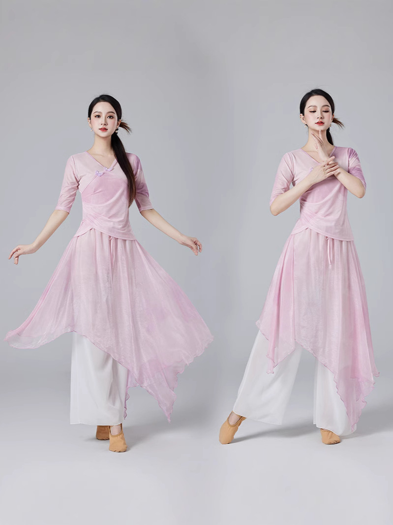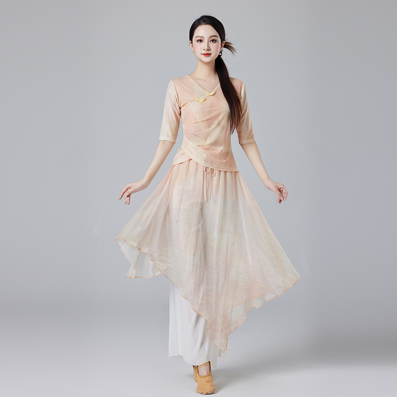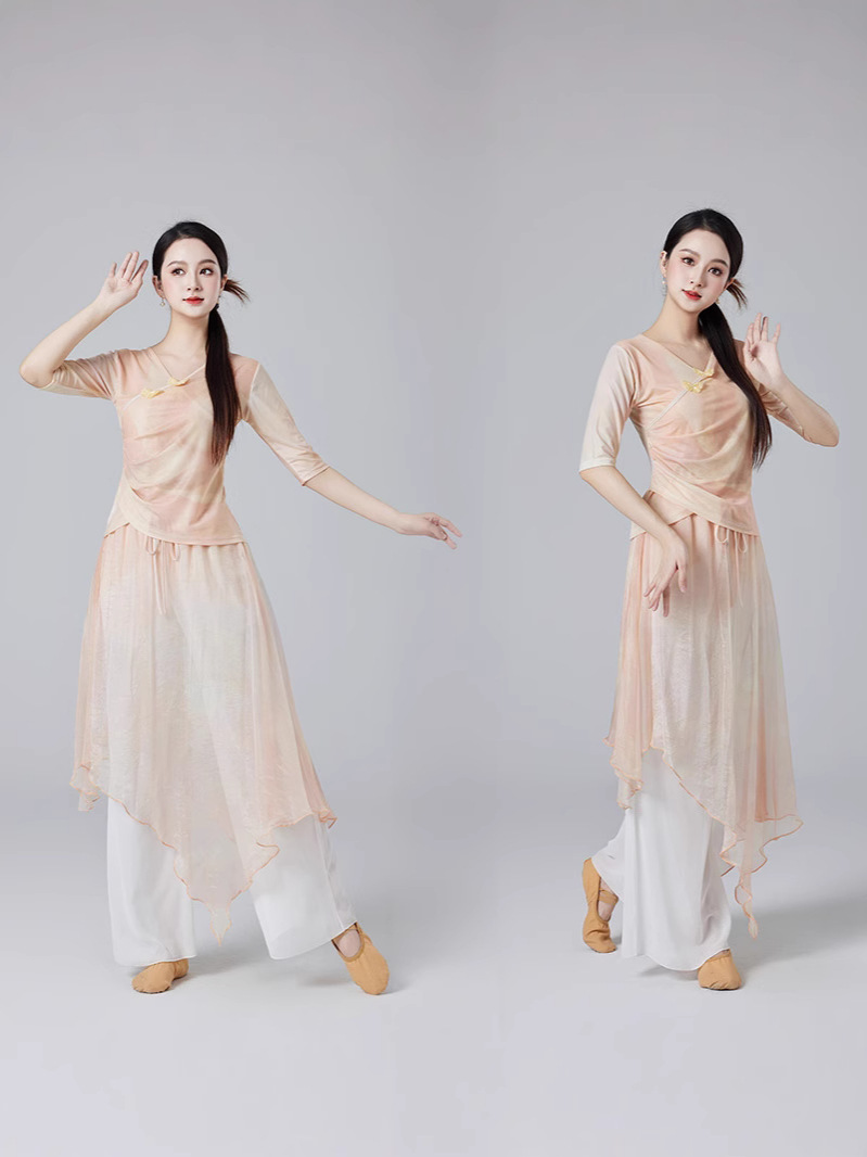 Китайский стиль классическая танцевальная одежда летний новый стиль брючный юбка свободная широкая нога брюки танцевальный элегантный цветение градиент цвет костюм