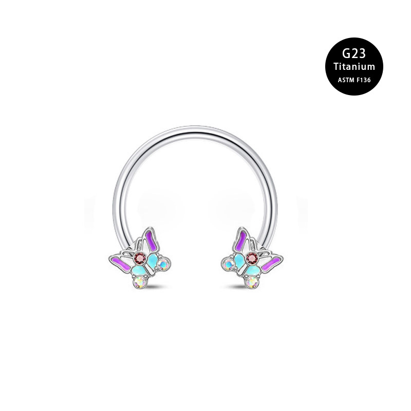 Трансграничное кольцо подковы горячая девушка титановый сплав губа носовое кольцо роспись масляных ушных гвоздей губная гвоздь бабочка типа C носовое кольцо 1.2*10 мм