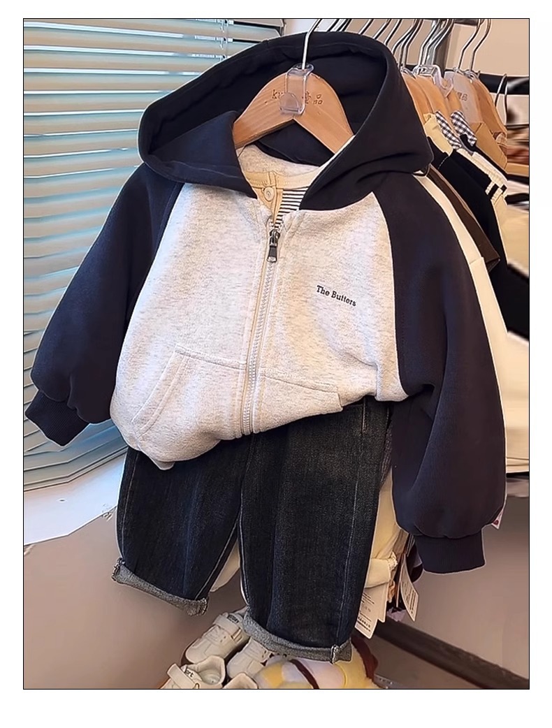 Мальчик контрастный цвет сшитый шапка пальто 2025 осень новая корейская свободная бейсбольная одежда для детей повседневный стиль топ